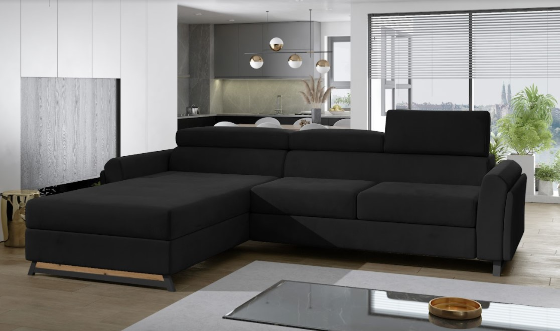 Rohová sedací souprava MARIALL má eleganci, pohodlí a úroveň. Maximální pohodlí vám zajistí pěny T30 a HR, ze kterých je zhotoven hluboký sedák. Díky nim je sedací souprava odolná proti deformacím všeho druhu a vaše tělo proti bolesti zad. Široké područky a 25 cm opěrky hlavy zvyšují komfort každodenního používání. Sedací souprava ve tvaru písmene L může zaujmout formu lůžka s plochou 110 x 240 cm. Sedačka je vybavena objemným úložným prostorem. Tuto sedací soupravu lze vyrobit v pravém či levém provedení. Potahová látka jako na hlavní fotografii.