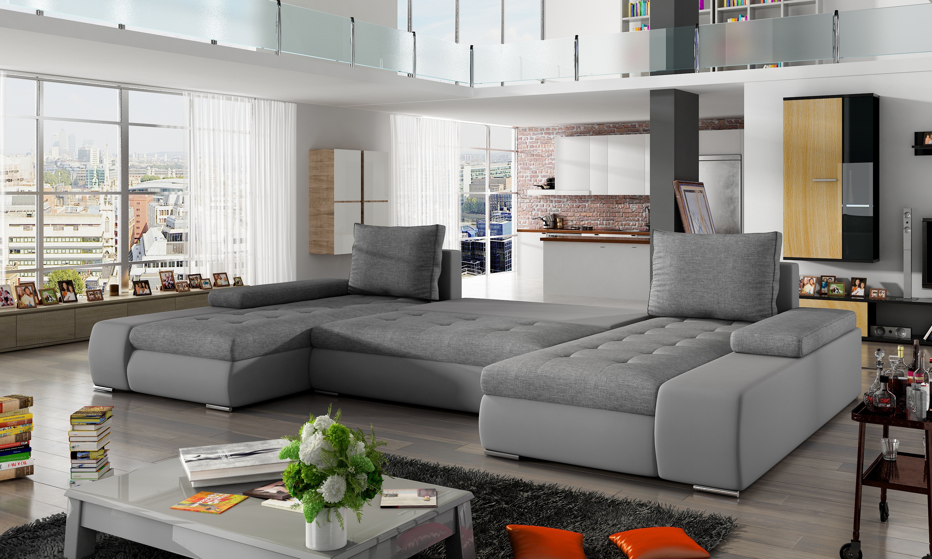 Rozkládací souprava s úložným prostorem v barevném provedení hnědá látka/eko kůže světle hnědá. Spací plocha 297x122 cm. Výplň sedáků je vyrobena z vlnité pružiny a pěny T30 - tato kombinace zajišťuje měkkost, pružnost a dostatečnou oporu během odpočinku. Tato sedací souprava je variabilní. Moderní design, mírně zaoblené uzávěry, jemné pěnové a okrasné polštáře mají významný vliv na celkový, stylistický vzhled a poskytuje maximální pohodlí při relaxaci během dne. Potahová látka jako na hlavní fotografii.