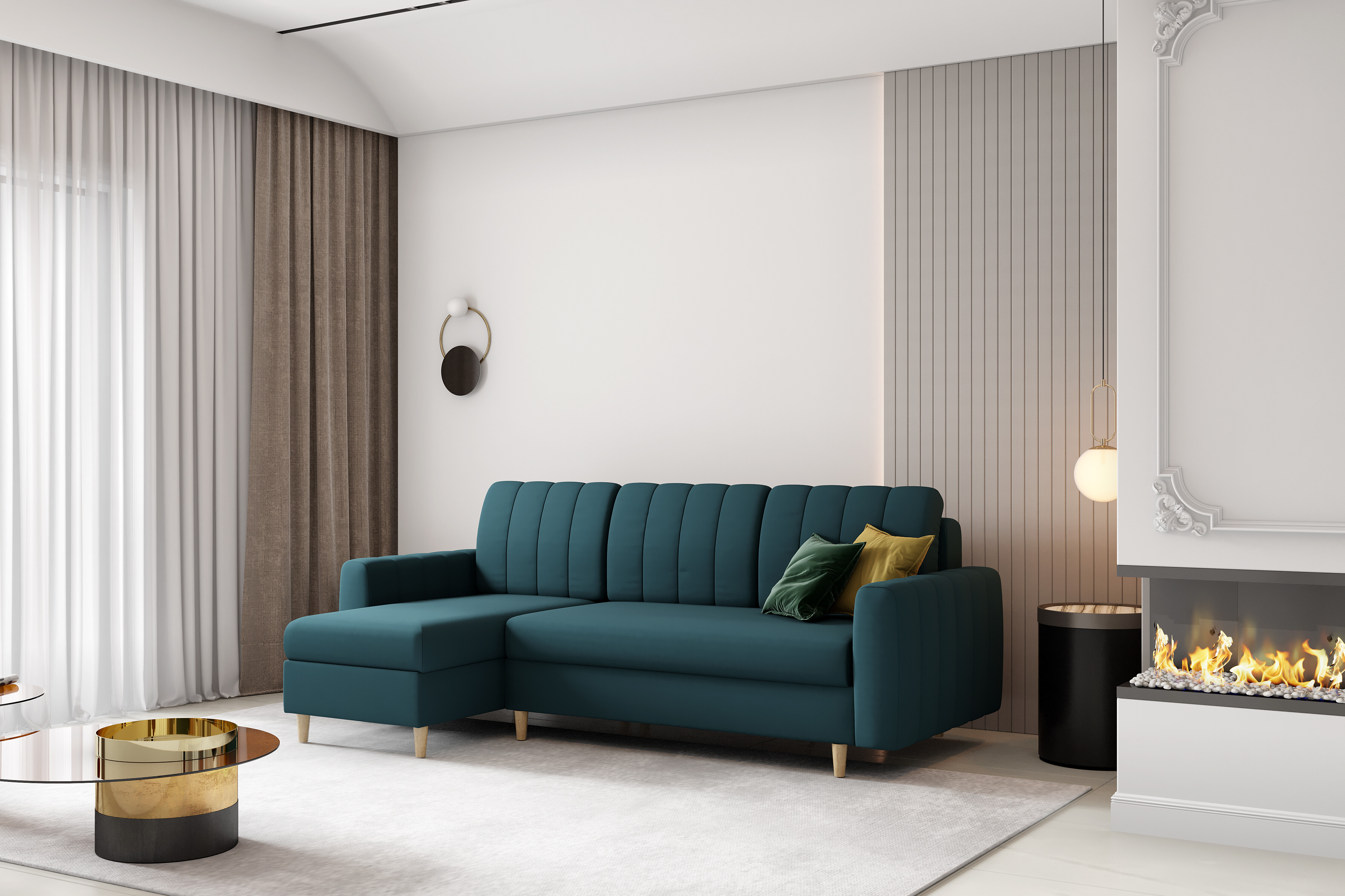 Stylová sedací souprava Masimo s pohodlnými prošívanými polštáři. Bočnice jsou zdobené prošitím. Samozřejmostí je úložný prostor a rozkladem vznikne spací plocha 197x124 cm. Nohy jsou dřevěné. Rohová sedací souprava má univerzální provedení, díky kterému nemusíme před nákupem volit stranu. Možnost výběru různých potahových látek. Foto je pouze ilustrační.