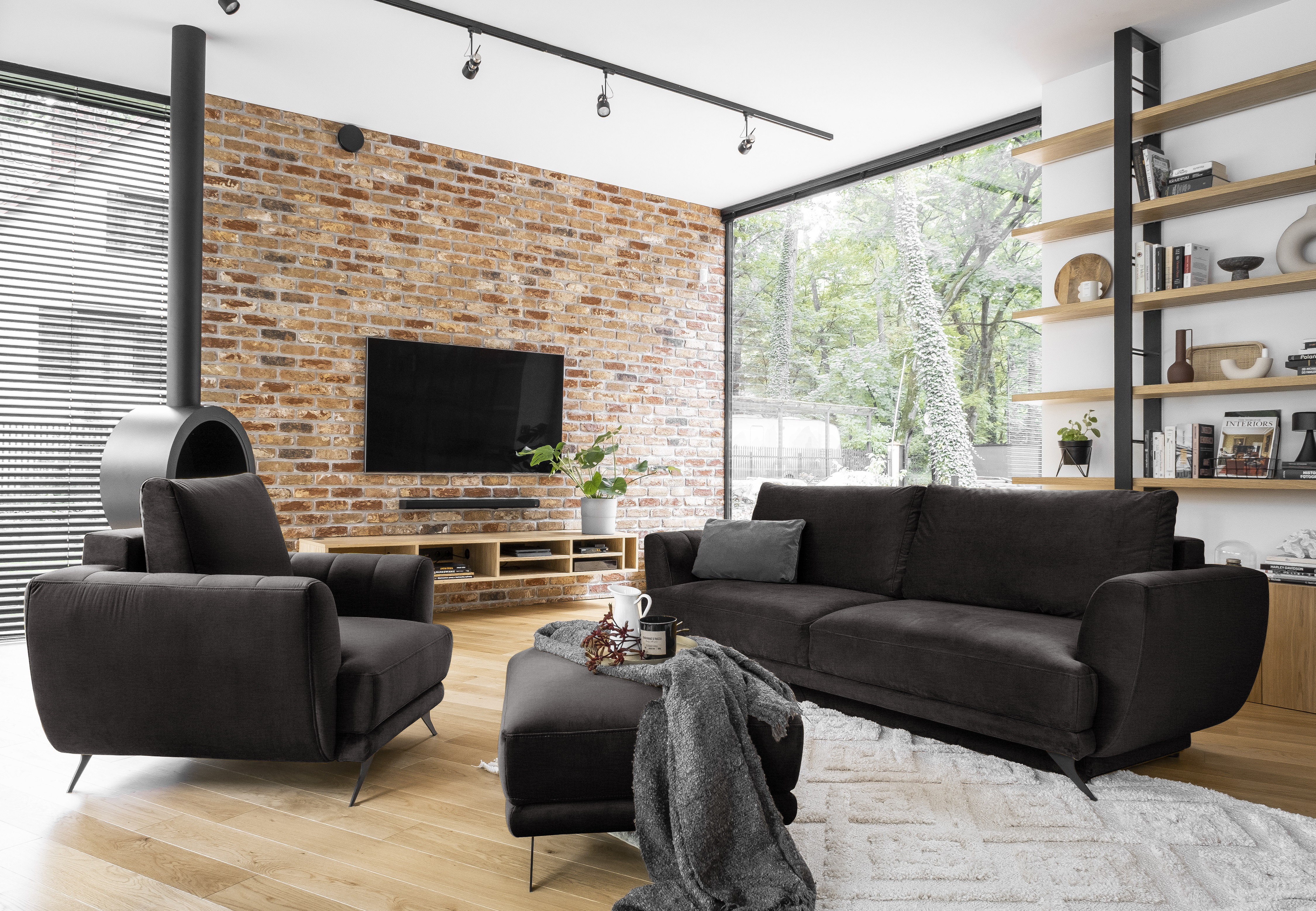 Sedací souprava Megis v barevném provedení Nube 22 se skládá z pohovky, křesla a taburetu. Sedáky jsou vyrobeny z vysoce elastické HR pěny. Pohovka se pomocí DL mechanismu dá rozložit na spací plochu 200x145 cm a disponuje úložným prostorem. Nohy pohovky, taburetu a křesla jsou z černé oceli s výškou až 13 centimetrů. Každý prvek setu lze zakoupit i samostatně.