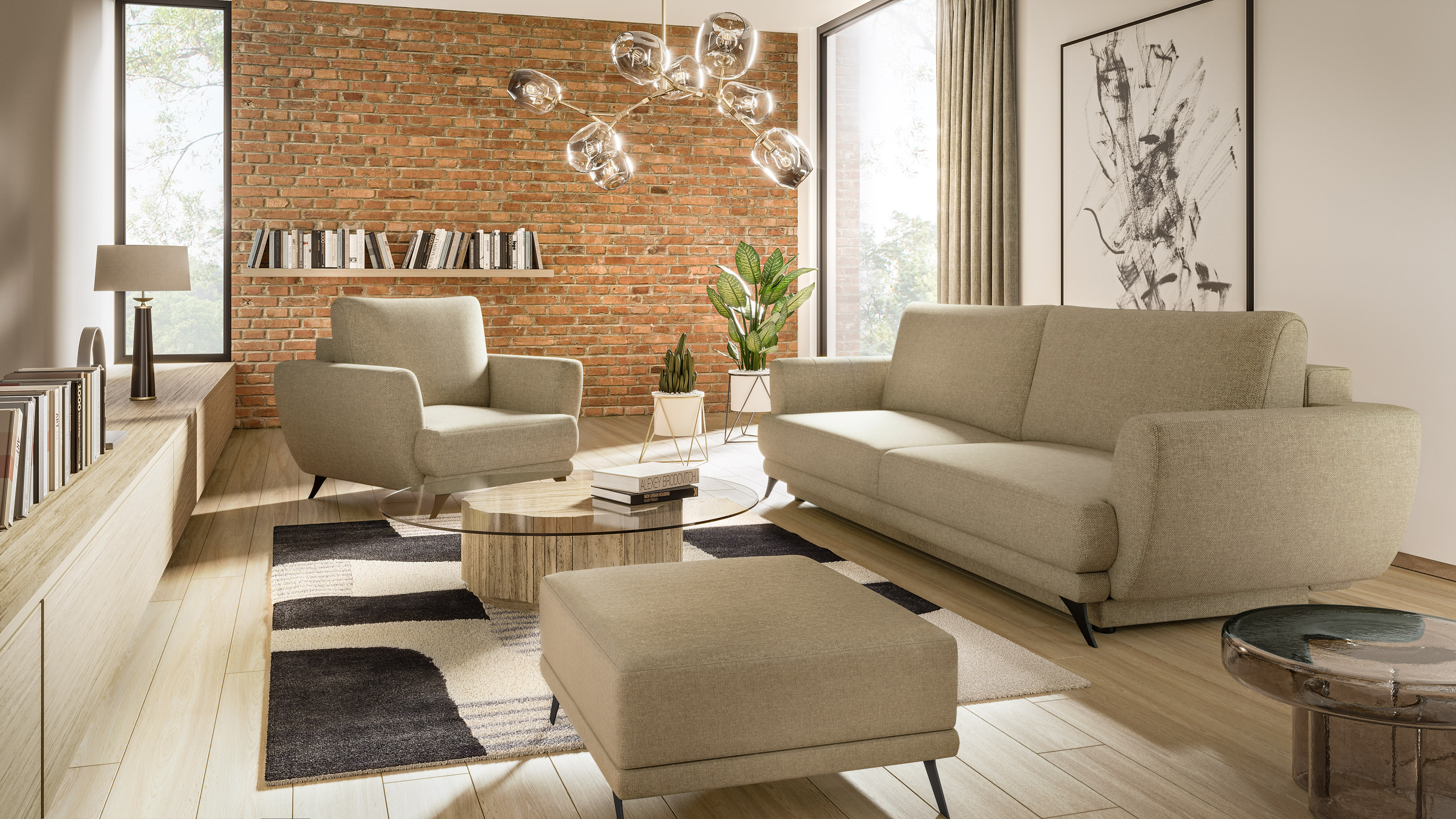 Sedací souprava Megis v barevném provedení Vero 18 se skládá z pohovky, křesla a taburetu. Sedáky jsou vyrobeny z vysoce elastické HR pěny. Pohovka se pomocí DL mechanismu dá rozložit na spací plochu 200x145 cm a disponuje úložným prostorem. Nohy pohovky, taburetu a křesla jsou z černé oceli s výškou až 13 centimetrů. Každý prvek setu lze zakoupit i samostatně.