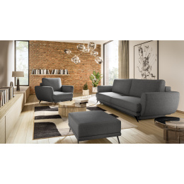 Sedací souprava Megis v barevném provedení Vero 5 se skládá z pohovky, křesla a taburetu. Sedáky jsou vyrobeny z vysoce elastické HR pěny. Pohovka se pomocí DL mechanismu dá rozložit na spací plochu 200x145 cm a disponuje úložným prostorem. Nohy pohovky, taburetu a křesla jsou z černé oceli s výškou až 13 centimetrů. Každý prvek setu lze zakoupit i samostatně.