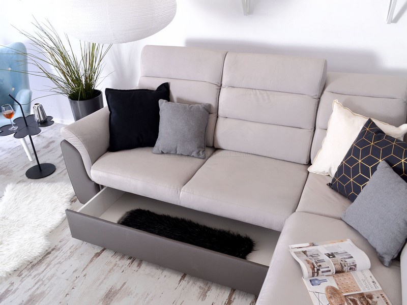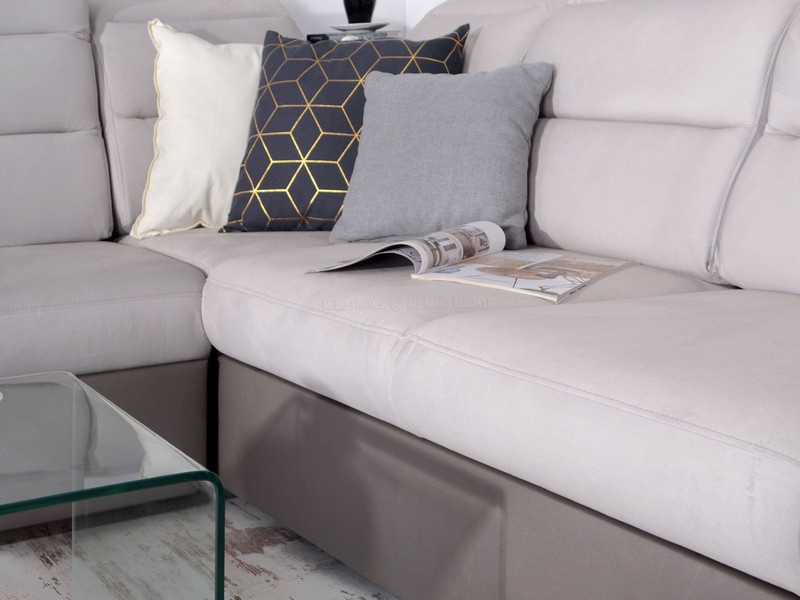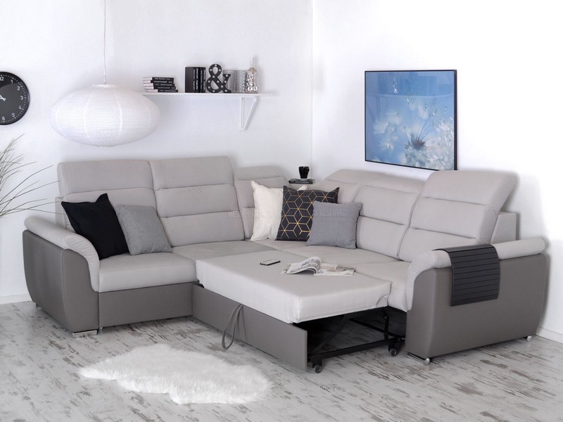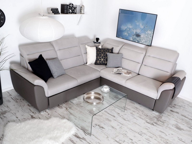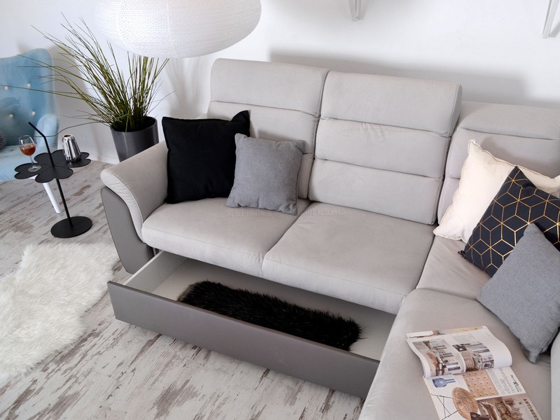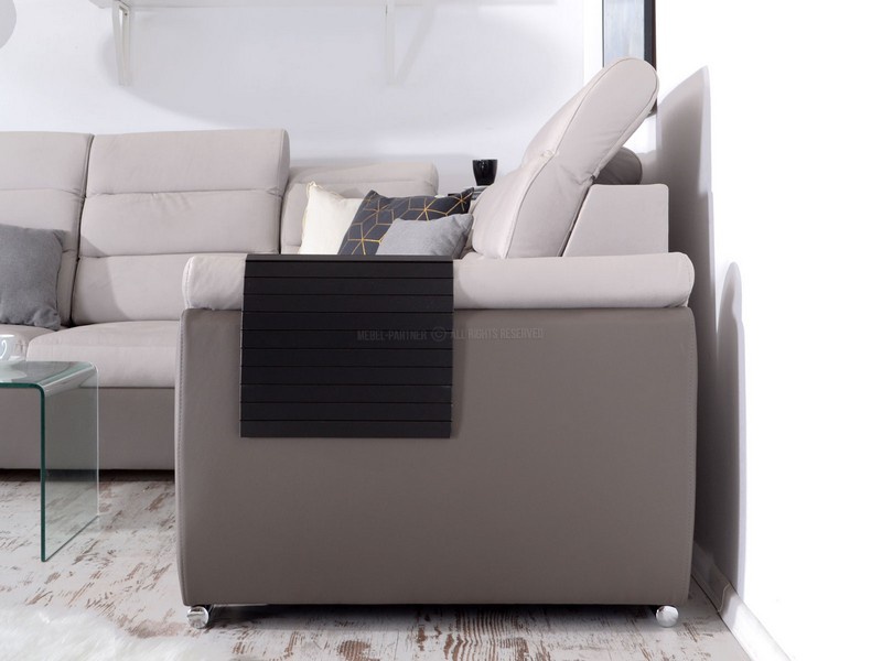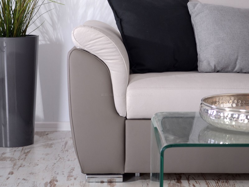 Moderní a designově velmi zajímavá sedací souprava Milano je rozkládací s úložným prostorem, který je řešený výsuvným šuplíkem a je vhodná na občasné přespání. Také velmi příjemným doplňkem je odkládací police, kterou naleznete v rohové části sedací soupravy. Základem výplně sedáku jsou vinuté pružiny a kvalitní PUR pěna. Sedací souprava je velmi praktická a pohodlná díky nastavitelným opěrkám hlavy. Nožky jsou v barvě chrom. Sedací souprava má čalouněná záda a je vhodná do prostoru.