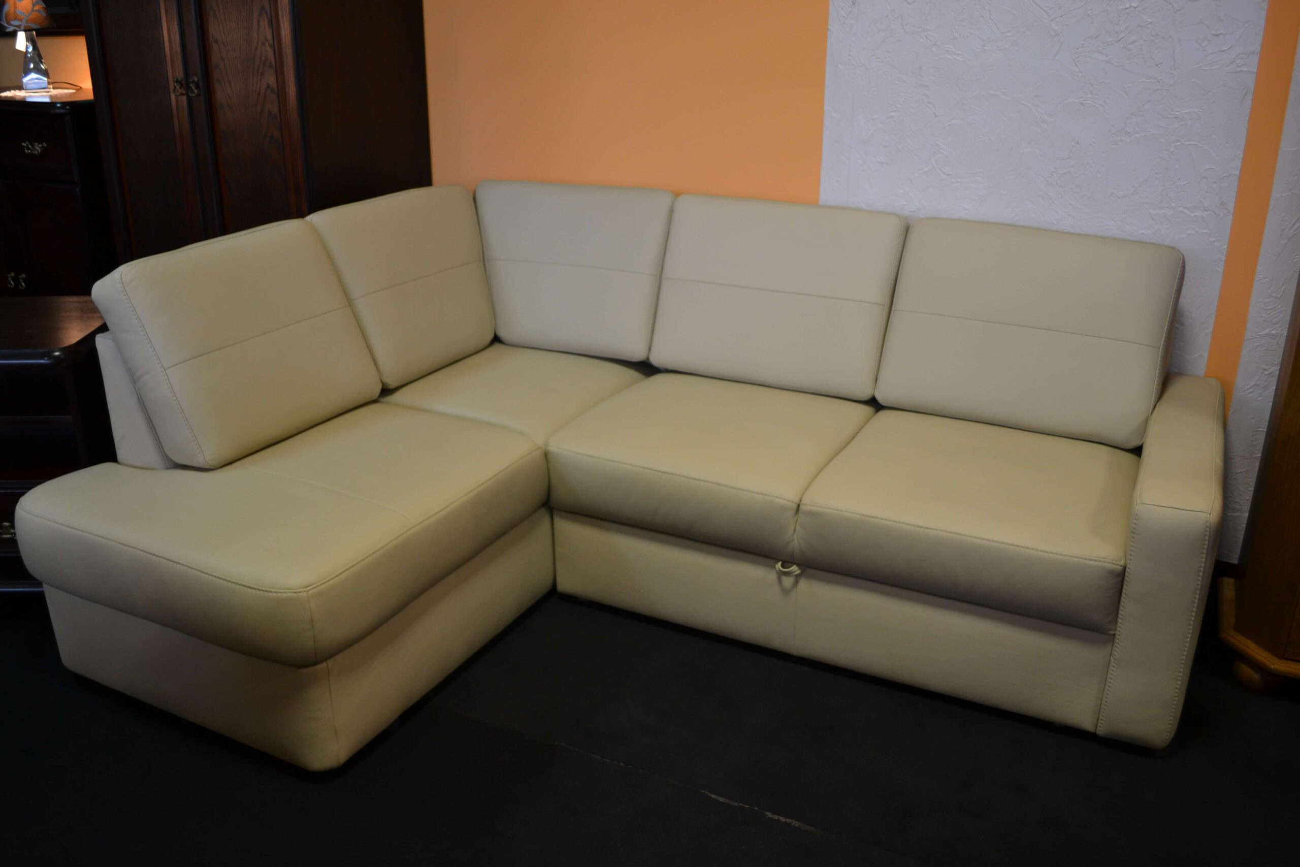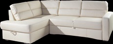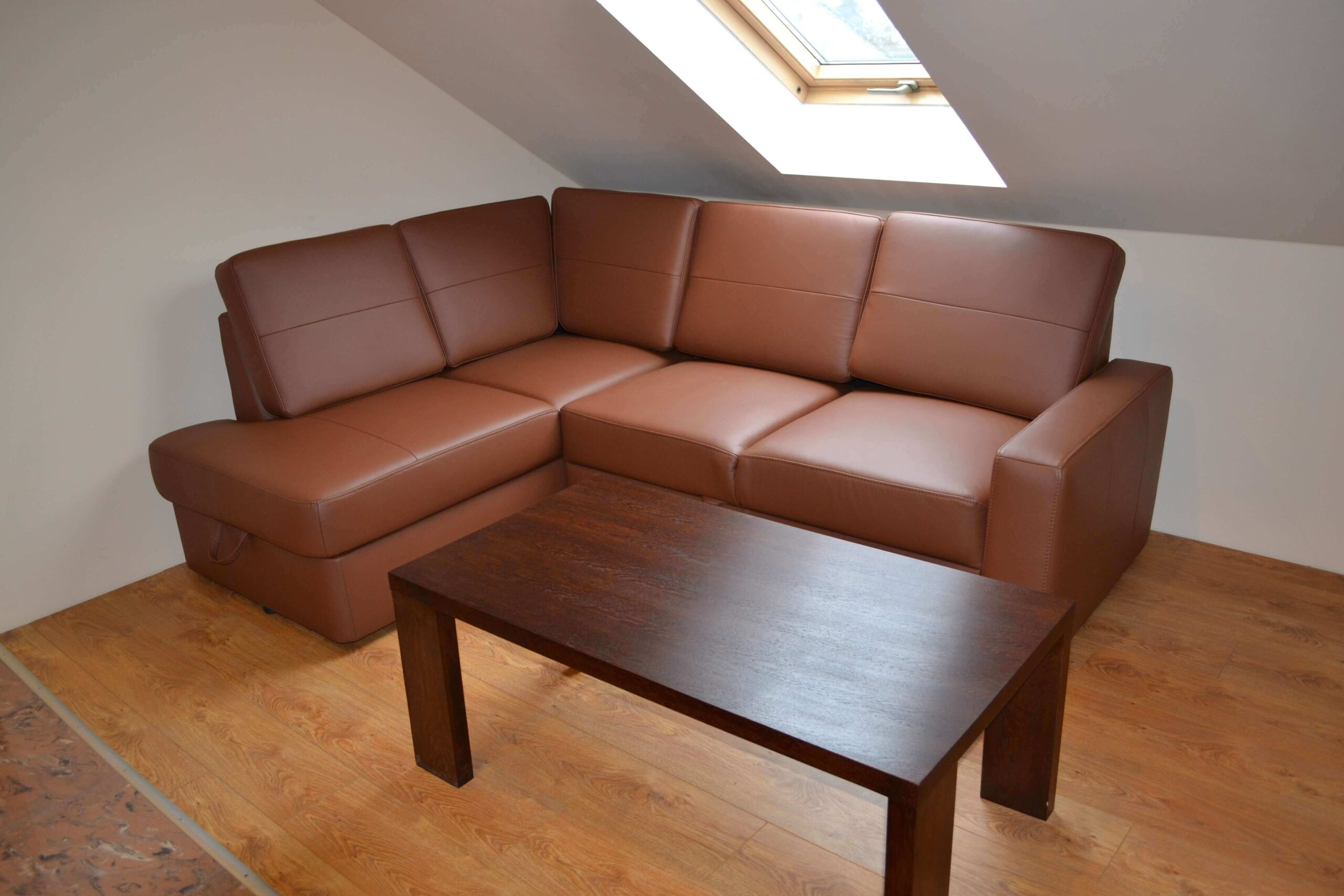 Komfortní a elegantní rohová sedací souprava je rozkládací s praktickým úložným prostorem, vhodná pro občasné přespání. Spací plocha 130x190 cm. Sedací souprava je vyrobena z pravé hovězí kůže. Základem výplně sedáku jsou pružiny bonell v kombinaci s vysoko elastickou HR pěnou. Sedací souprava nemá čalouněná záda (pouze černá látka) - za příplatek v kůži 3.557,-Kč. Možnost výběru barvy kůže. Vámi zvolenou variantu barvy kůže a provedení pravá/levá uveďte do objednávky. Na fotu je sedací souprava v levém provedení.