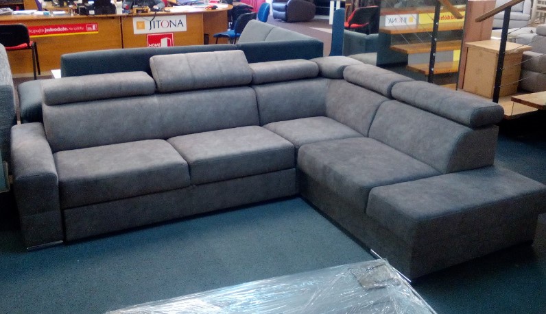 Moderní rozkládací souprava MODULO IV s úložným prostorem a možností nastavení polohovací opěrky hlavy. Sedáky jsou plněny vlnitými pružinami a kvalitní PUR pěnou, která Vám zajistí pohodlné sezení. Sedací souprava je určena do prostoru. Nožky jsou kovové. Potahová látka, viz. foto.