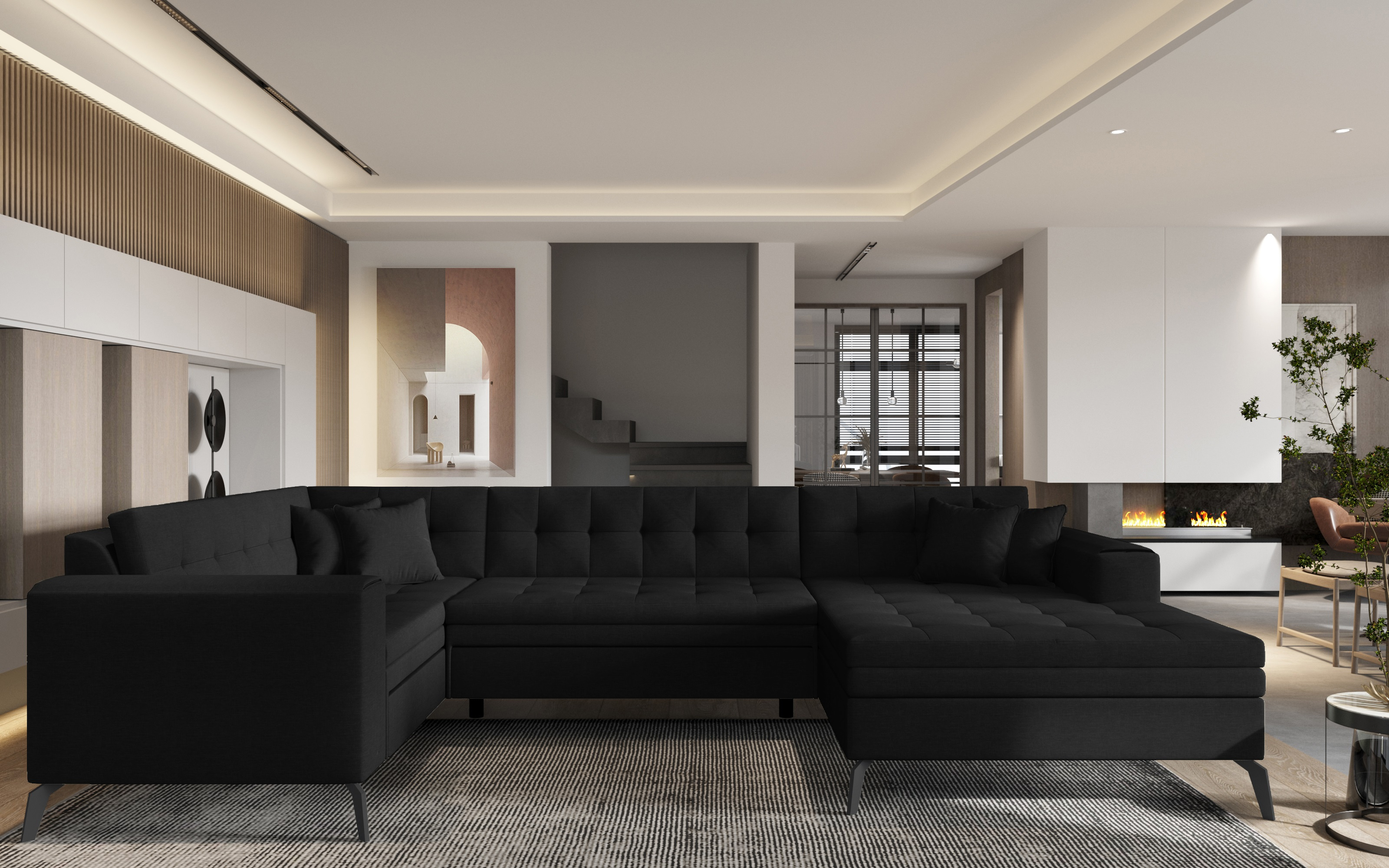 Sedací souprava Montez v provedení Flores 10 má rám z borovicového dřeva. Sedák má vyrobený z odolné vlnité pružiny a pružné pěny T3040. Pomocí rozkladu DL vznikne spací plocha 275 x 120 cm. Disponuje úložným prostorem. Nosnost pohovky 480 kg. Nohy jsou kovové černé o výšce 13 cm. Provedení rohu pravé. Zboží je částečně smontováno.