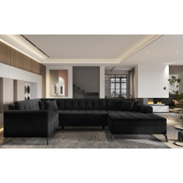 Sedací souprava Montez v provedení Lukso 10 má rám z borovicového dřeva. Sedák má vyrobený z odolné vlnité pružiny a pružné pěny T3040. Pomocí rozkladu DL vznikne spací plocha 275 x 120 cm. Disponuje úložným prostorem. Nosnost pohovky 480 kg. Nohy jsou kovové černé o výšce 13 cm. Provedení rohu pravé. Zboží je částečně smontováno.