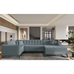 Sedací souprava Montez v provedení Savoi 100 má rám z borovicového dřeva. Sedák má vyrobený z odolné vlnité pružiny a pružné pěny T3040. Pomocí rozkladu DL vznikne spací plocha 275 x 120 cm. Disponuje úložným prostorem. Nosnost pohovky 480 kg. Nohy jsou kovové černé o výšce 13 cm. Provedení rohu pravé. Zboží je částečně smontováno.