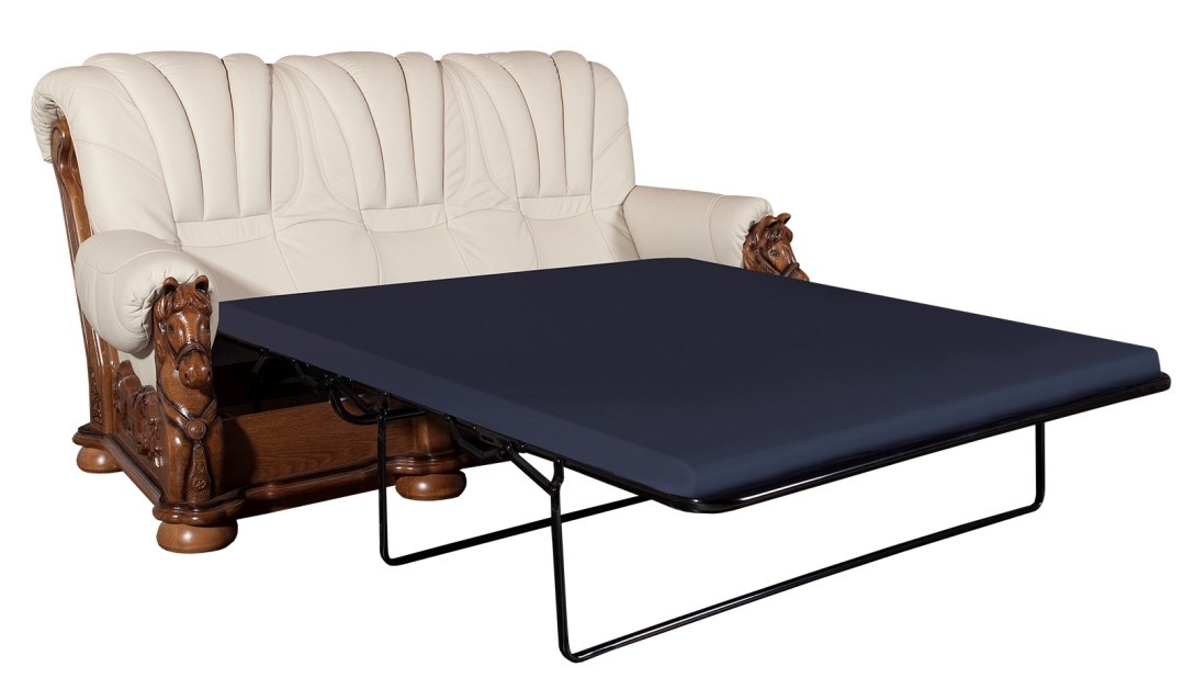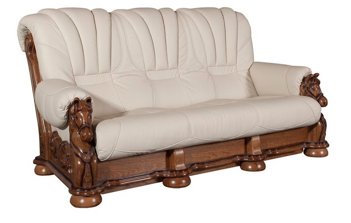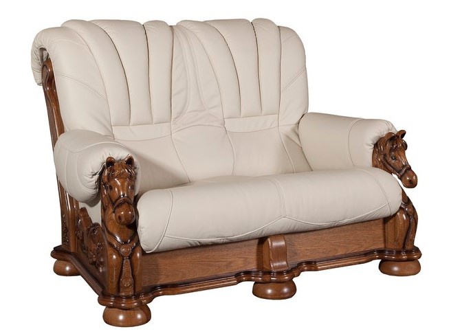 Rustikální luxusní sedací souprava je vyrobena z pravé hovězí kůže. Kostra je vyrobena z dubového masivu. Tato sedací souprava zaujme hlavně milovníky koní. Její dubová konstrukce je vyřezávaná, přední nohy jsou v podobě koňské hlavy, což zaručuje její originalitu. Výplň sedáků je vysoce kvalitní polyuretanová pěna s pružinou bonel. Souprava se skládá z pohovky 3-sed.+pohovky 2-sed. + křesla. Pohovka 3-sed. je rozkládací pro příležitostné spaní, spací plocha 140x 190 cm. Možnost výběru barvy kůže, dřeva i složení sedací soupravy MUSTANG. Vámi zvolenou variantu barvy kůže i dřeva (dle přiloženého vzorníku ve fotkách) uveďte do objednávky.