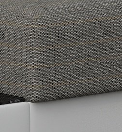 Rozkládací souprava s úložným prostorem v barevném provedení světle šedá/eko kůže Soft černá. Spací plocha 205x145 cm. Výplň sedáků je vyrobena z vlnité pružiny a pěny T30 - tato kombinace zajišťuje měkkost, pružnost a dostatečnou oporu během odpočinku. Souprava zaujme díky dekorativním prvkům v podobě prostorných polštářů, stylového prošívání a dřevěných nohou a dále díky polici, která je prodloužením loketní opěrky s dodatečným prostorem pro malé předměty nebo knihy. Potahová látka jako na hlavní fotografii, provedení pravé. Sedací souprava není určena do prostoru, nemá očalouněná záda (očalounění zad za příplatek, na dotaz). Možnost výběru pravého/levého provedení.