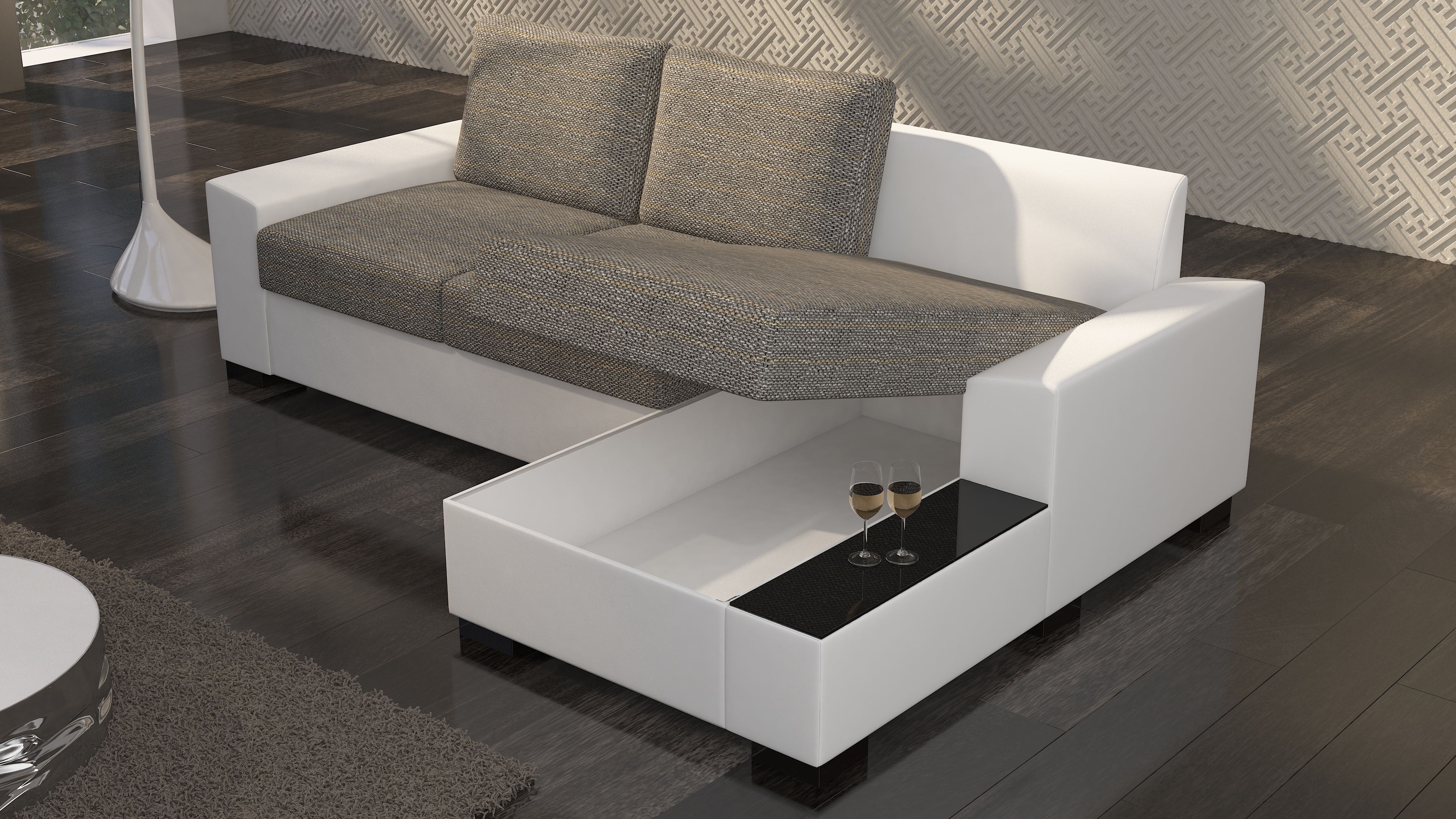 Rozkládací souprava s úložným prostorem v barevném provedení zelená/černá. Spací plocha 205x145 cm. Výplň sedáků je vyrobena z vlnité pružiny a pěny T30 - tato kombinace zajišťuje měkkost, pružnost a dostatečnou oporu během odpočinku. Souprava zaujme díky dekorativním prvkům v podobě prostorných polštářů, stylového prošívání a dřevěných nohou a dále díky polici, která je prodloužením loketní opěrky s dodatečným prostorem pro malé předměty nebo knihy. Potahová látka jako na hlavní fotografii, provedení pravé. Sedací souprava není určena do prostoru, nemá očalouněná záda (očalounění zad za příplatek, na dotaz). Možnost výběru pravého/levého provedení.