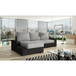 Sedací souprava Negro v provedení Sawana 21/ eko kůže Soft 11 má rám z borovicového dřeva. Sedadlo je vyplněno vyplněn bonellem a pěnou T30. Pomocí mechanismu DL vznikne spací plocha o rozměru 205x145 cm. Nožky jsou černé dřevěné. Disponuje úložným prostorem a prodlouženým taburetem ve stylu police zdobené sklem. Nosnost soupravy 270 kg. Provedení rohu je levé. Zboží je částečně smontováno.