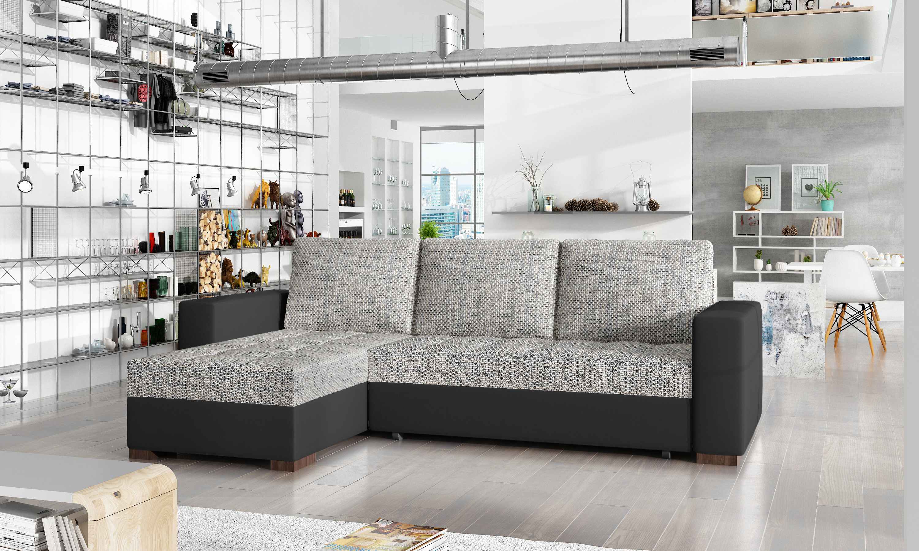 Sedací souprava Newark v provedení Berlin 01/ eko kůže Soft 17 má rám z borovicového dřeva. Sedadlo je vyplněno vyplněn bonellem a pěnou T25. Pomocí mechanismu DL vznikne spací plocha o rozměru 195x125 cm. Nožky jsou černé dřevěné. Disponuje úložným prostorem. Nosnost soupravy 270 kg. Provedení rohu je variabilní. Zboží je částečně smontováno