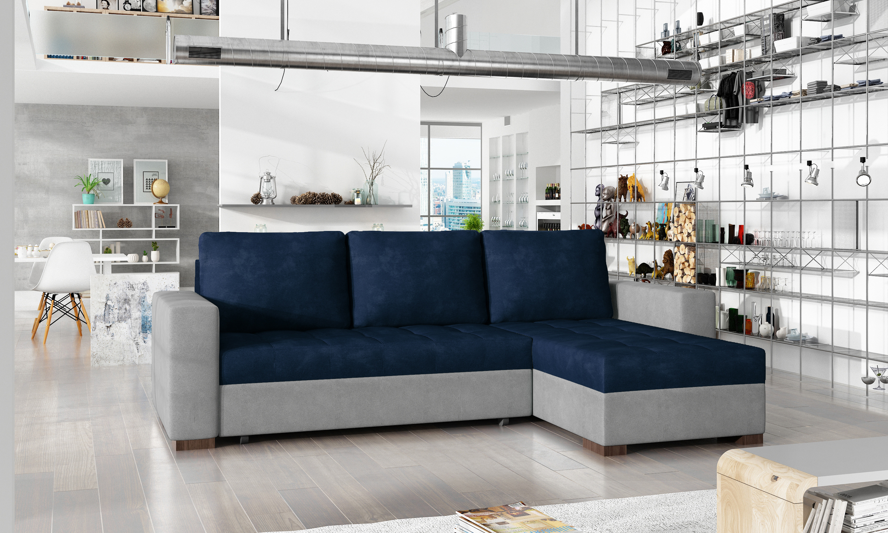 Sedací souprava Newark v provedení Kronos 09/ Paros 05 má rám z borovicového dřeva. Sedadlo je vyplněno vyplněn bonellem a pěnou T25. Pomocí mechanismu DL vznikne spací plocha o rozměru 195x125 cm. Nožky jsou černé dřevěné. Disponuje úložným prostorem. Nosnost soupravy 270 kg. Provedení rohu je variabilní. Zboží je částečně smontováno