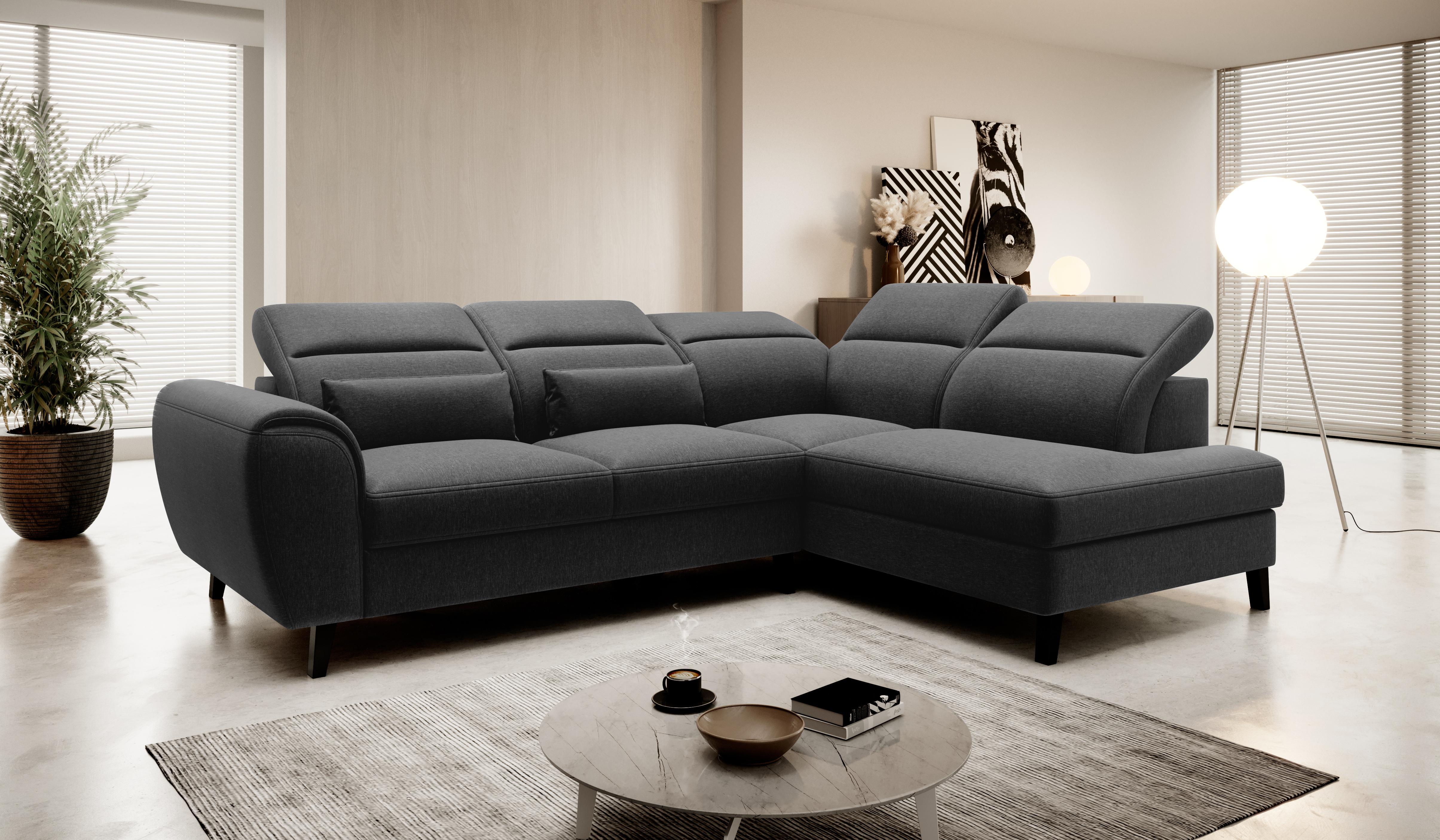 Sedací souprava Noble v provedení Flores 10 má rám z borovicového dřeva. Sedák má vyrobený z odolné vlnité pružiny typu B a vysoce flexibilní HR pěny. Výplň polštářů pěnový granulát. Rozkladem DL vznikne spací plocha 120x195 cm. Sedací souprava disponuje úložným prostorem a 5 nastavitelnými opěrkami hlavy. Nosnost pohovky 320 kg. Nohy jsou dřevěné černé o výšce 13 cm. Provedení rohu pravé. Souprava je vhodná do prostoru. Zboží je částečně smontováno.