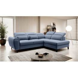 Sedací souprava Noble v provedení Gojo 40 má rám z borovicového dřeva. Sedák má vyrobený z odolné vlnité pružiny typu B a vysoce flexibilní HR pěny. Výplň polštářů pěnový granulát. Rozkladem DL vznikne spací plocha 120x195 cm. Sedací souprava disponuje úložným prostorem a 5 nastavitelnými opěrkami hlavy. Nosnost pohovky 320 kg. Nohy jsou dřevěné černé o výšce 13 cm. Provedení rohu pravé. Souprava je vhodná do prostoru. Zboží je částečně smontováno.