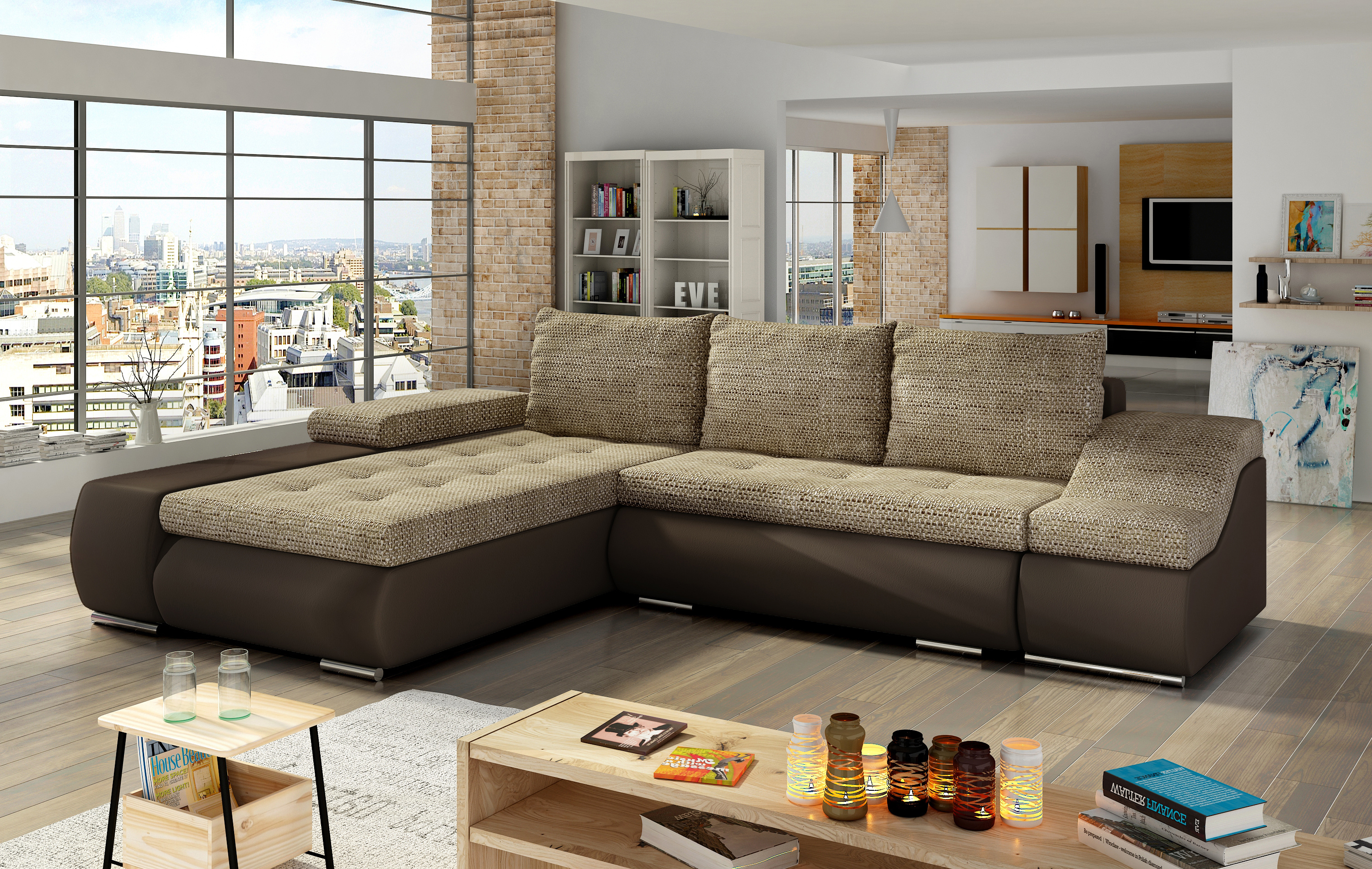 Sedací souprava Ontario v provedení Berlin 03/ eko kůže Soft 66 má rám z borovicového dřeva. Sedadlo je vyplněno kombinací vlnitých pružin a pěny T3040. Opěradlo má výplň pěnou T2542. Pomocí mechanismu DL vznikne spací plocha o rozměru 240x140 cm. Nožky jsou stříbrné kovové. Disponuje úložným prostorem a rozšířenou loketní opěrkou na jedné straně (druhá strana má kratší vlnitou loketní opěrku). Nosnost soupravy 270 kg. Provedení rohu levé. Zboží je částečně smontováno.