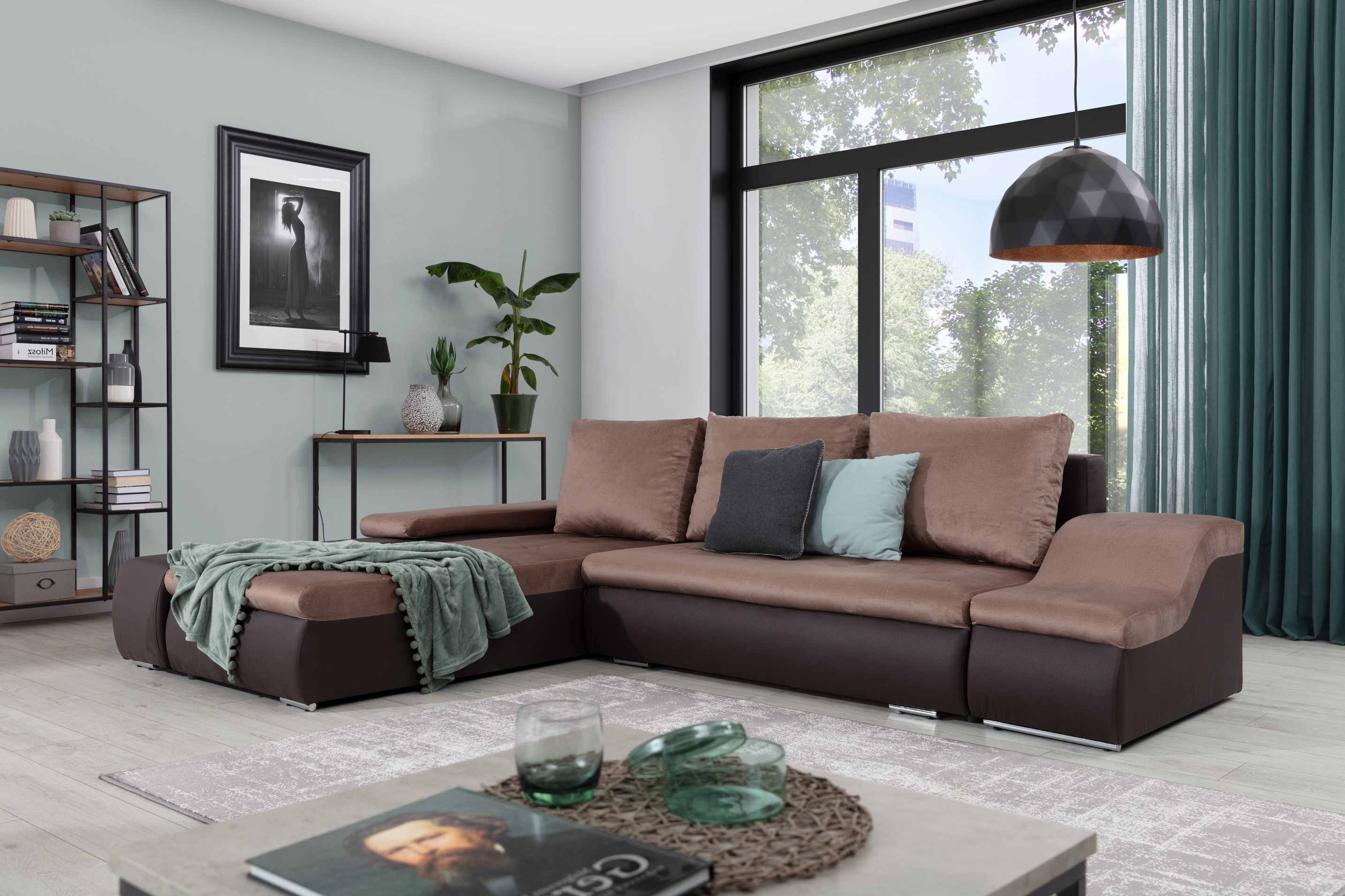 Sedací souprava Ontario v provedení Monolith 09 / eko kůže Soft 66 má rám z borovicového dřeva. Sedadlo je vyplněno kombinací vlnitých pružin a pěny T3040. Opěradlo má výplň pěnou T2542. Pomocí mechanismu DL vznikne spací plocha o rozměru 240x140 cm. Nožky jsou stříbrné kovové. Disponuje úložným prostorem a rozšířenou loketní opěrkou na jedné straně (druhá strana má kratší vlnitou loketní opěrku). Nosnost soupravy 270 kg. Provedení rohu levé. Zboží je částečně smontováno.