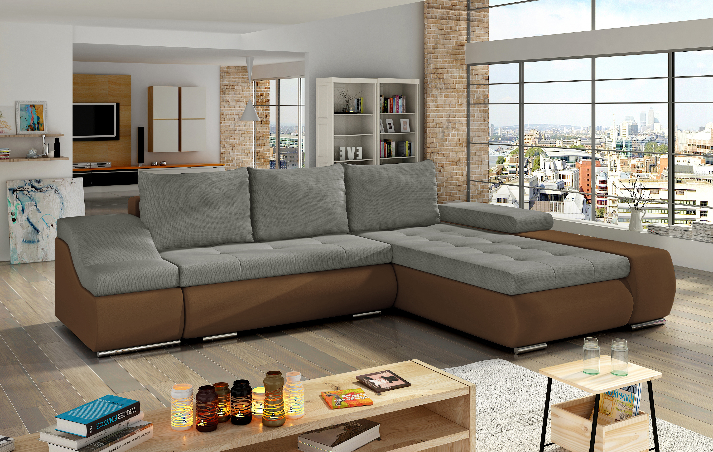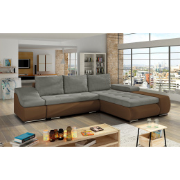 Sedací souprava Ontario v provedení Soro 13/ eko kůže Soft 15 má rám z borovicového dřeva. Sedadlo je vyplněno kombinací vlnitých pružin a pěny T3040. Opěradlo má výplň pěnou T2542. Pomocí mechanismu DL vznikne spací plocha o rozměru 240x140 cm. Nožky jsou stříbrné kovové. Disponuje úložným prostorem a rozšířenou loketní opěrkou na jedné straně (druhá strana má kratší vlnitou loketní opěrku). Nosnost soupravy 270 kg. Provedení rohu pravé. Zboží je částečně smontováno.
