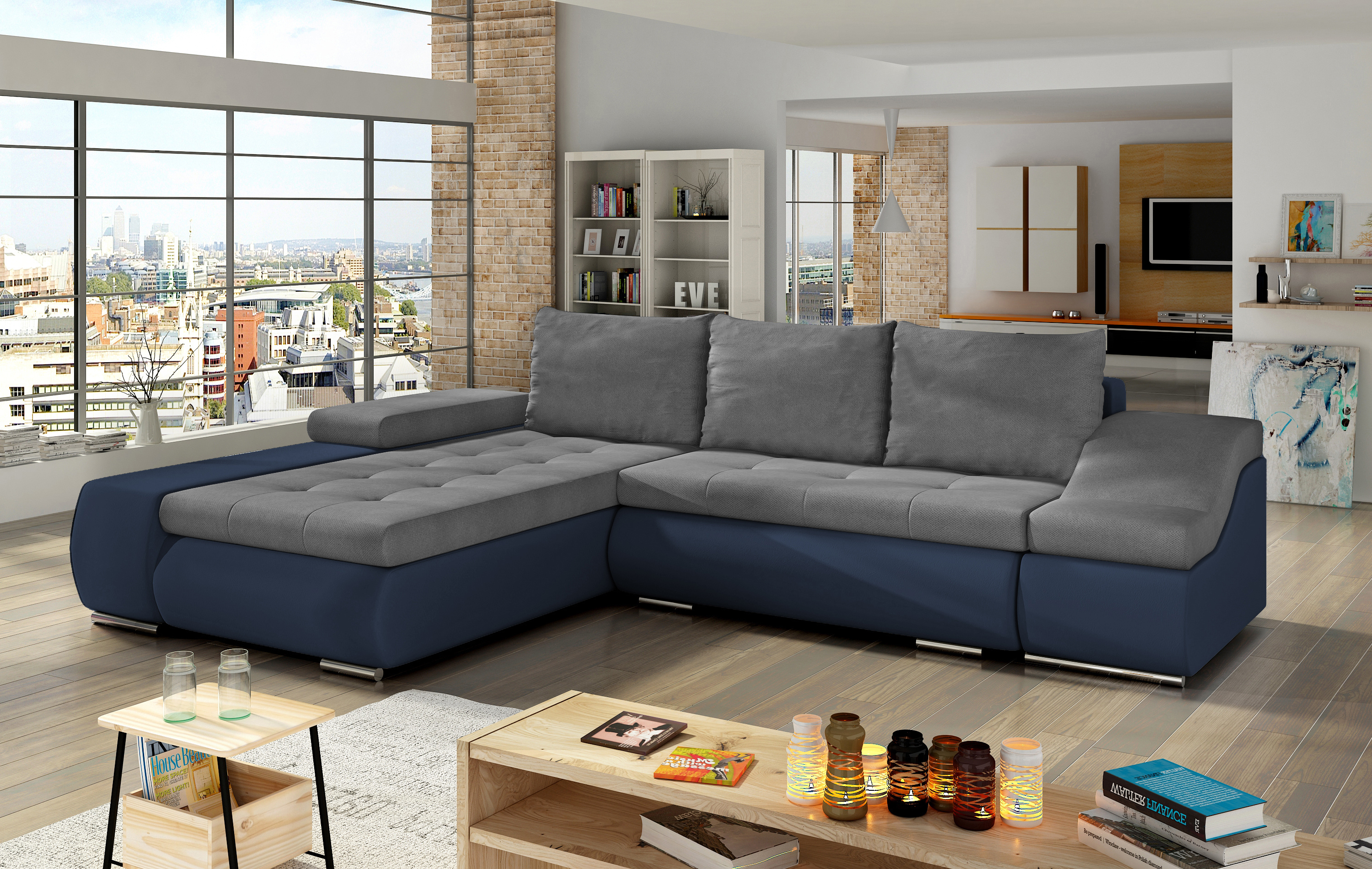 Sedací souprava Ontario v provedení Soro 93/ eko kůže Soft 09 má rám z borovicového dřeva. Sedadlo je vyplněno kombinací vlnitých pružin a pěny T3040. Opěradlo má výplň pěnou T2542. Pomocí mechanismu DL vznikne spací plocha o rozměru 240x140 cm. Nožky jsou stříbrné kovové. Disponuje úložným prostorem a rozšířenou loketní opěrkou na jedné straně (druhá strana má kratší vlnitou loketní opěrku). Nosnost soupravy 270 kg. Provedení rohu levé. Zboží je částečně smontováno.