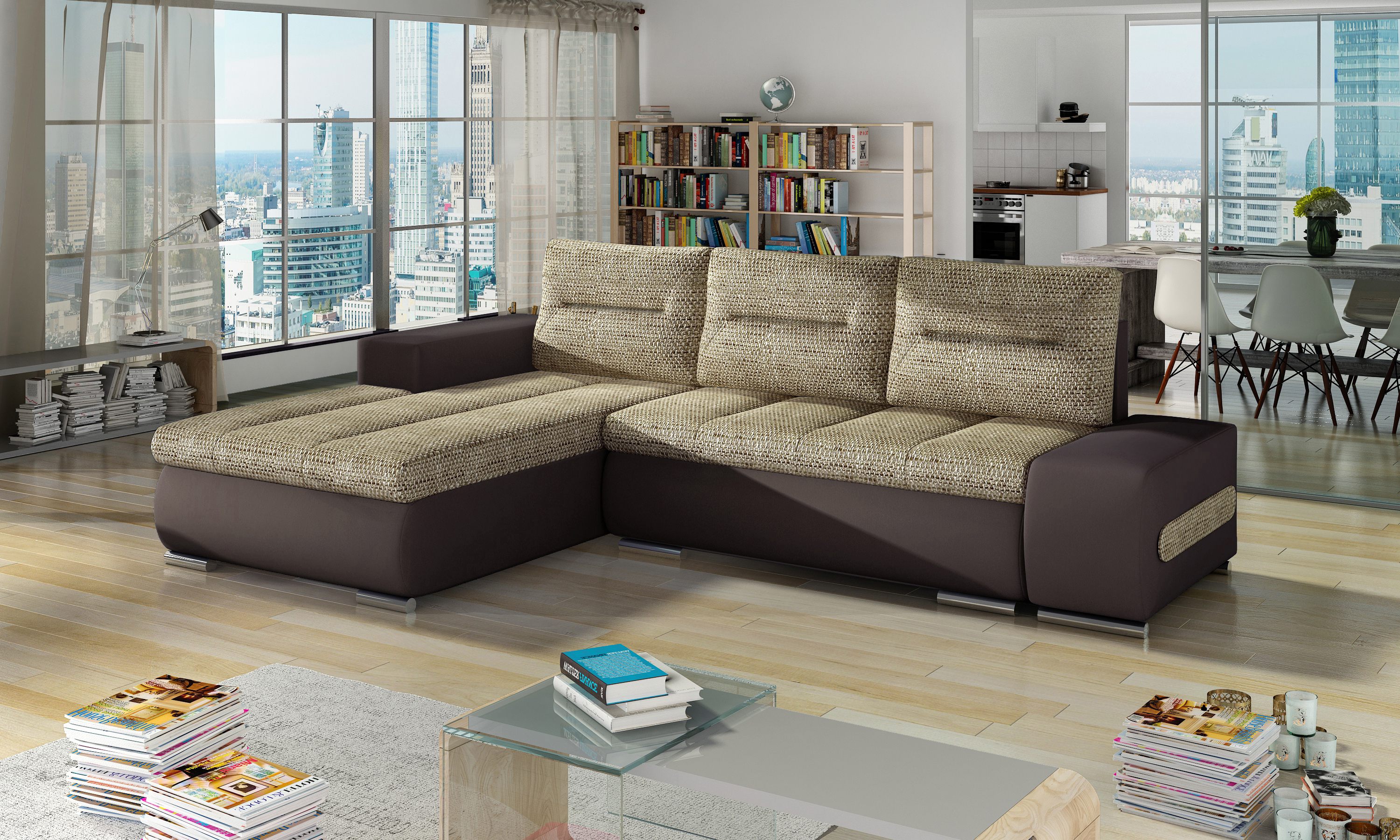 Sedací souprava Onttavio v provedení Berlin 03 / eko kůže Soft 66 má rám z borovicového dřeva. Sedadlo je vyplněno vlnitou pružinou a vysoce kvalitní elastickou pěnou T30. Výplň opěradla pěnou T2540. Pomocí mechanismu DL vznikne spací plocha o rozměru 195x125 cm. Nožky jsou plastové stříbrné. Disponuje úložným prostorem. Nosnost soupravy 270 kg. Provedení rohu levé. Zboží je částečně smontováno.