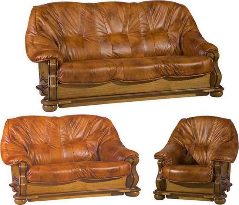 Rustikální luxusní sedací souprava je vyrobena z pravé hovězí kůže. Kostra je vyrobena z tvrdého dubového dřeva s pevnou konstrukcí. Na bocích této soupravy je ručně vyřezaný motiv. Výplň sedáků je vysoce kvalitní polyuretanová pěna s pružinou bonel. Souprava se skládá z pohovky 3-sed. + pohovky 2-sed. + křesla. Pohovka 3-sed. je rozkládací pro příležitostné spaní, spací plocha 140x190 cm. Možnost výběru barvy kůže, dřeva i složení sedací soupravy PARYS. Vámi zvolenou variantu barvy kůže i dřeva (dle přiloženého vzorníku ve fotkách) uveďte do objednávky.