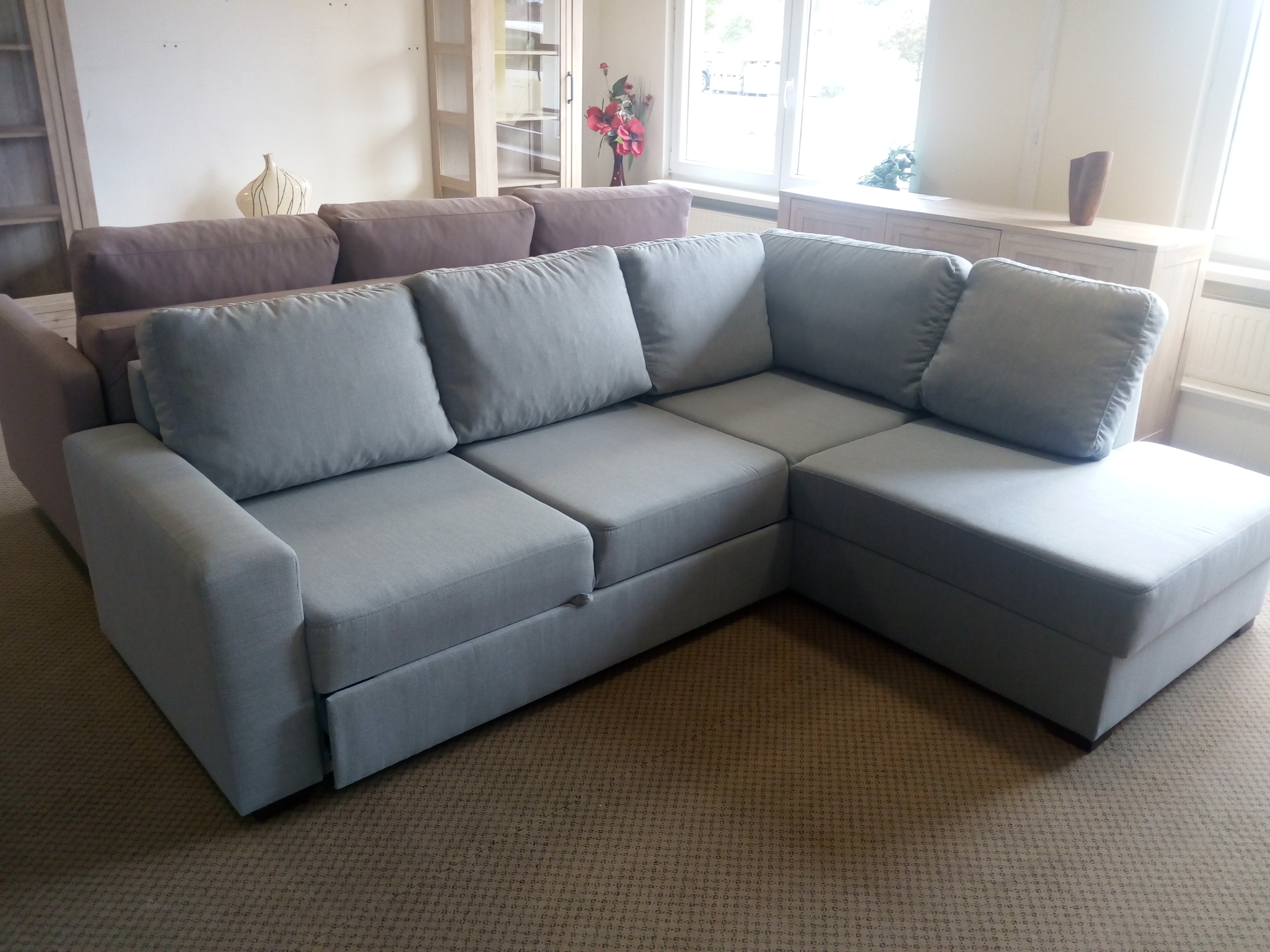 Elegantní sedací souprava je vyrobena v kombinaci pružiny faliste s vysoce kvalitní PUR pěnou. Sedací souprava je rozkládací, pouze na příležitostné spaní. Nožky má dřevěné. Opěrné polštáře jsou volně ložené. Sedací souprava také disponuje úložným prostorem. Potahová látka Ronda 70 světle šedá jako na hlavním fotu.