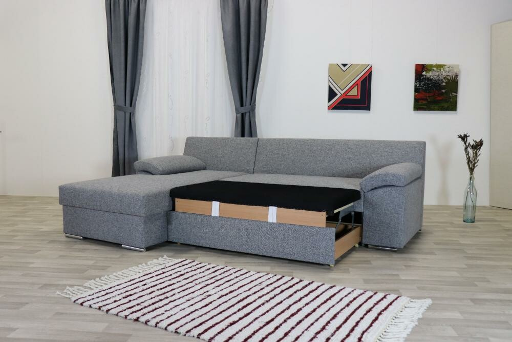 Kostra sedací soupravy je tvořena kombinací masivu a dřevařských velkoplošných materiálů. Sedadlové plochy jsou tvořeny pružinami (ploché pružiny) a vysoce kvalitním sendvičem ze zátěžové pěny Rebo RE 80 a studené pěny HR50. Opěradla jsou tvořeny volnými polštáři s výplní z komfortní PUR pěny. Lehací plocha se vytvoří pomocí rozkládacího mechanismu, ukrytého pod sedací částí. Rozkladem vznikne spací plocha 135x195 cm. Možnost pořízení v pravém nebo levém provedení.