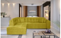 Rozkládací souprava v barevném provedení žlutá. Spací plocha 200x126 cm. Výplň sedáků je vyrobena z vlnité pružiny a pěny T30 - tato kombinace zajišťuje měkkost, pružnost a dostatečnou oporu během odpočinku. Přesné šití a čalouněná tkanina nejvyšší kvality činí nábytek velmi elegantním. Potahová látka jako na hlavní fotografii, provedení pravé. Možnost výběru pravého/levého provedení.