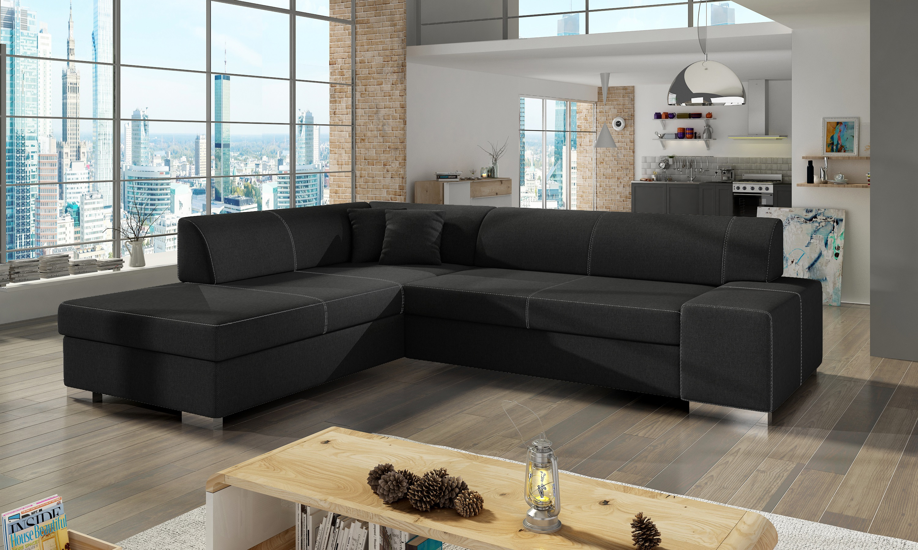 Sedací souprava Porto v provedení Sawana 14 má rám z borovicového dřeva. Sedadlo je vyplněno vlnitou pružinou a vysoce kvalitní elastickou pěnou T30. Pomocí mechanismu DL vznikne spací plocha o rozměru 210x135 cm. Nožky jsou plastové stříbrné o výšce 7 cm. Disponuje úložným prostorem. Nosnost soupravy 315 kg. Provedení rohu levé. Zboží je částečně smontováno.
