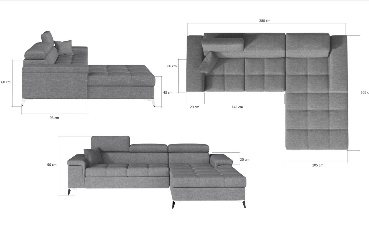 Elegantní sedací souprava Ricardo je vyrobená v elegantním stylu z masivního dřeva v kombinaci s dřevotřískou v dezénu sv.šedá / černá. Kostra sedací soupravy je vyrobena z kombinace tvrdého a měkkého dřeva. Výrobce na pérování sedáku použil kvalitní pružiny typu Faliste a PUR pěnu. Sedačka je rozkládací, a disponuje úložným prostorem. Funkčnost zajišťují polohovací záhlavníky. Nožky jsou v moderním provedení z kovu. Výplň sedáku a opěrek je z kvalitní polyuretanové PUR pěny, která zaručuje maximální pohodlí. Sedací soupravu lze pohodlně rozložit a využít tak pro příležitostné přespání. Zboží dodáváme v demontu.