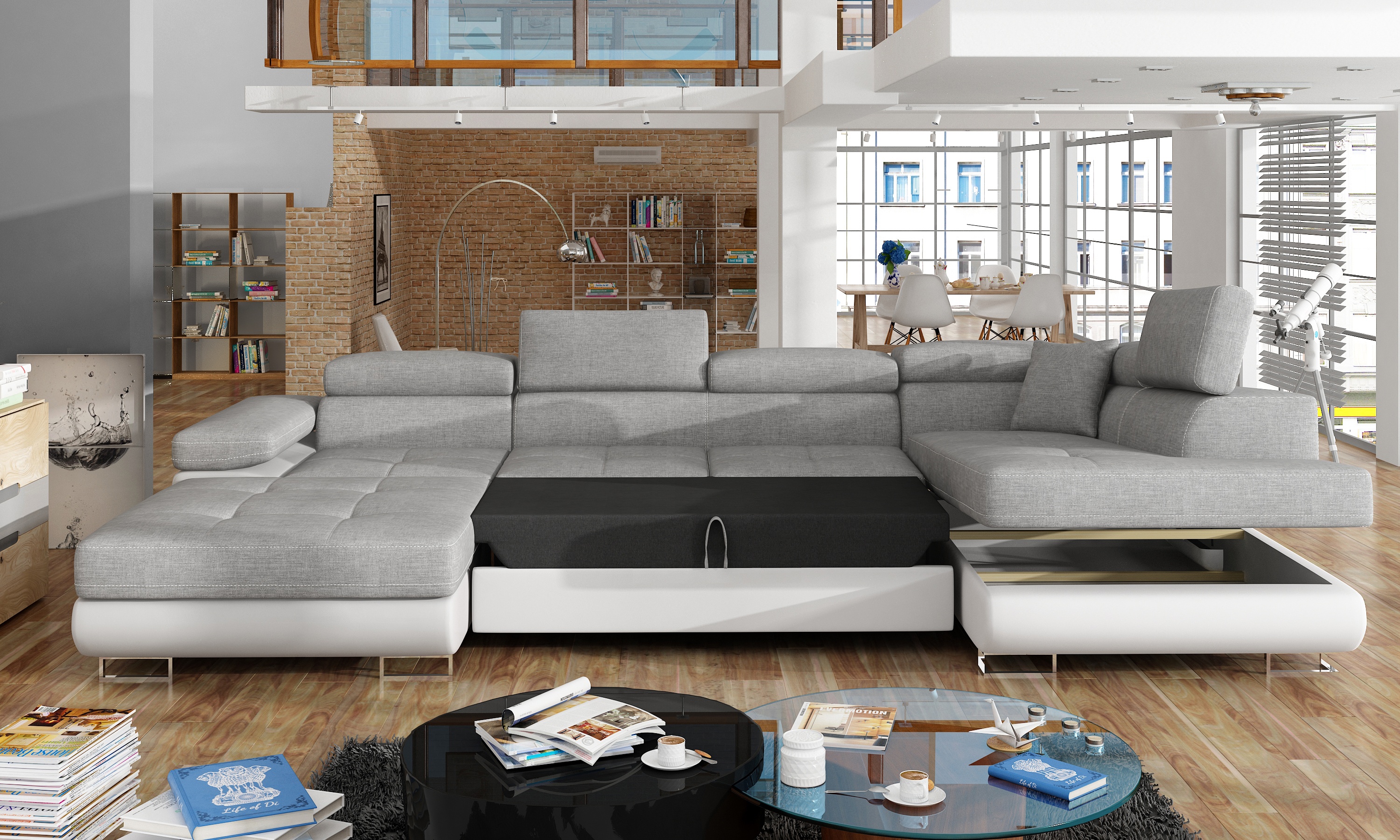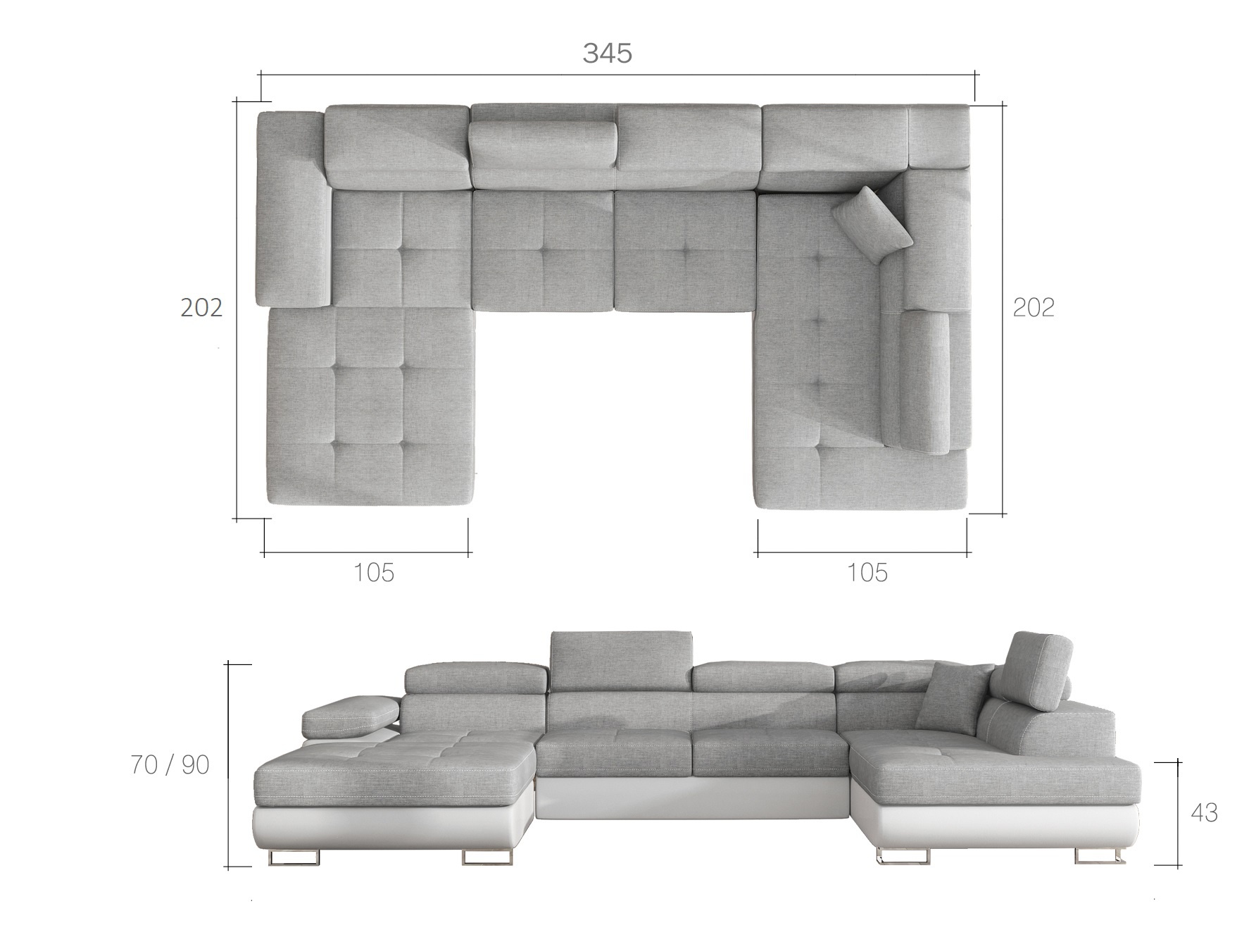 Rozkládací souprava s úložným prostorem v barevném provedení černá. Spací plocha 125x266cm. Výplň sedáků je vyrobena z vlnité pružiny a pěny T30 - tato kombinace zajišťuje měkkost, pružnost a dostatečnou oporu během odpočinku. Díky barvám kombinujícím dva odstíny - horní část nábytku je udržována v jednotné barvě, spodní část má kontrastní odstín, má za následek zajímavý vizuální efekt. Potahová látka jako na hlavní fotografii, provedení pravé. Možnost výběru pravého/levého provedení.
