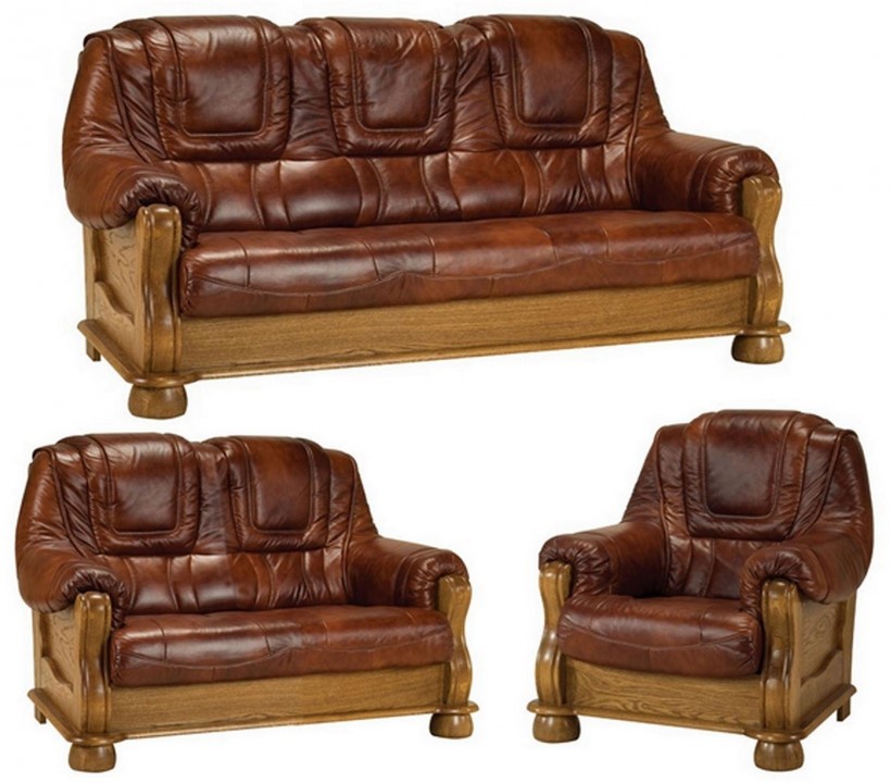 Luxusní sedací souprava je vyrobena z pravé hovězí kůže. Kostra je vyrobena z tvrdého dubového dřeva s pevnou konstrukcí. Výplň sedáků je vysoce kvalitní polyuretanová pěna s pružinou bonel. Souprava se skládá z pohovky 3-sed. + pohovky 2-sed. + křesla. Pohovka 3-sed. je rozkládací pro příležitostné spaní, spací plocha 140x190 cm. Možnost výběru barvy kůže, dřeva i složení sedací soupravy ROMA. Vámi zvolenou variantu barvy kůže i dřeva (dle přiloženého vzorníku ve fotkách) uveďte do objednávky.
