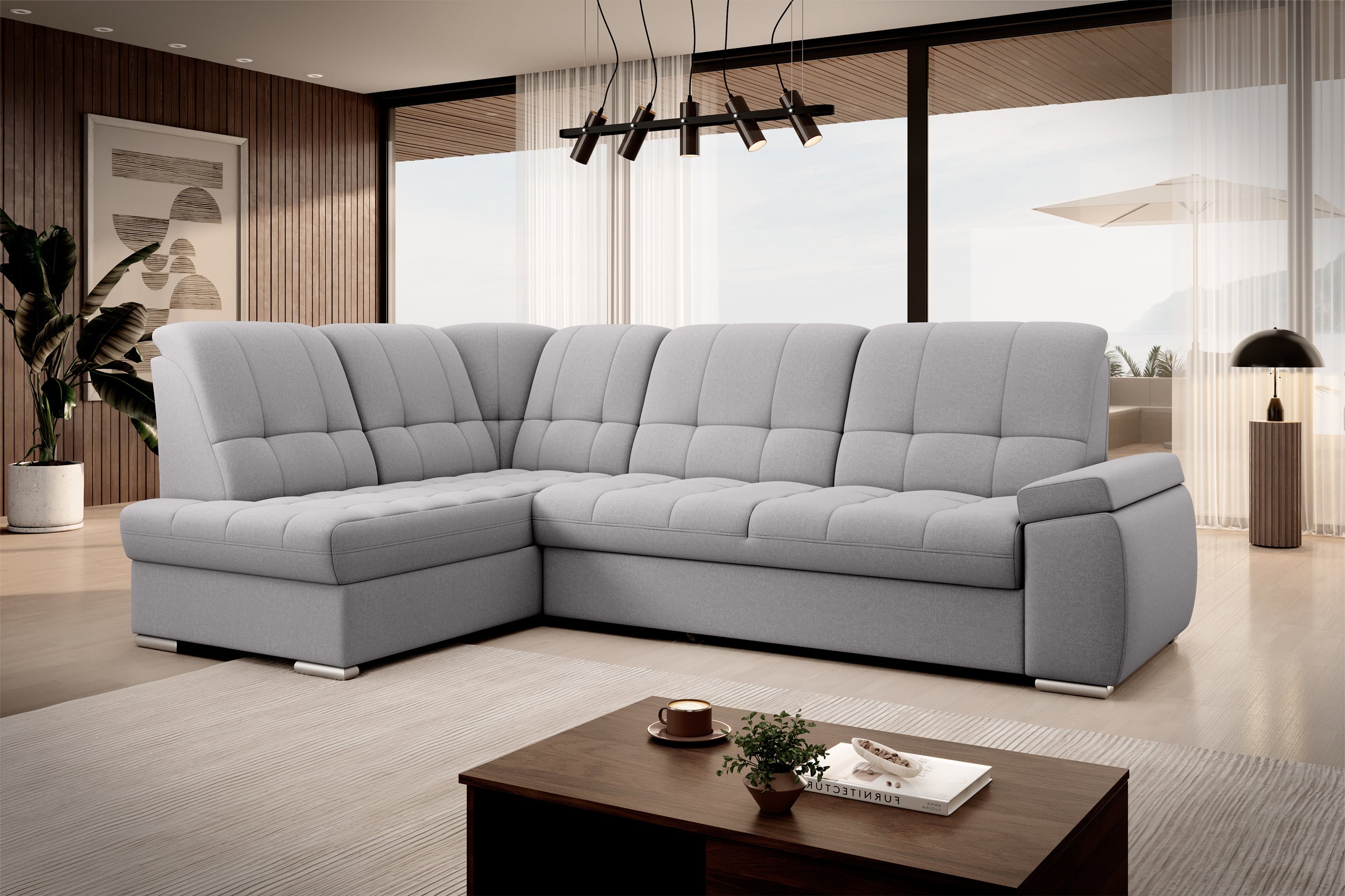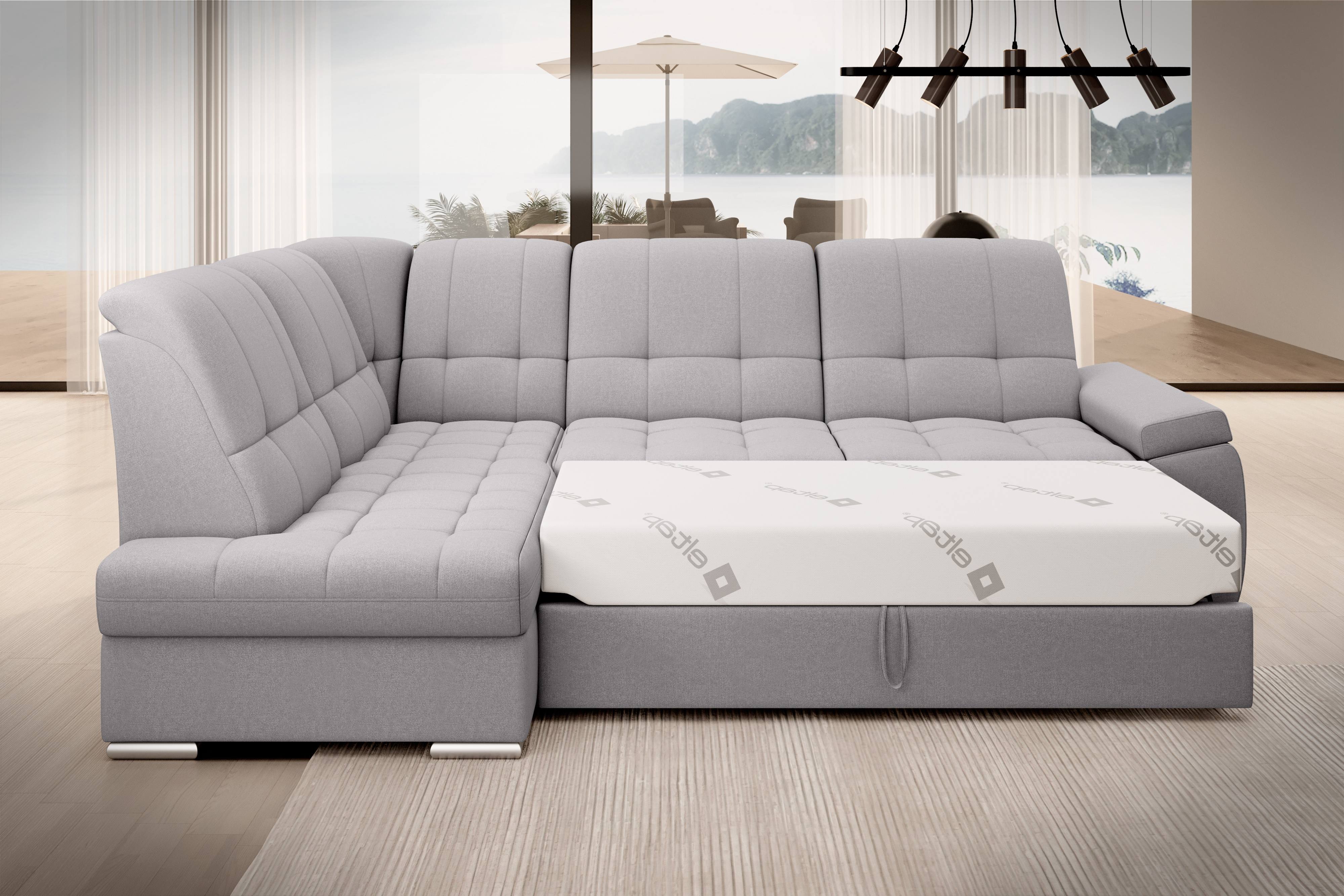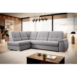 Sedací souprava Sado v provedení Gojo 4 má rám z borovicového dřeva. Sedák má vyrobený z odolné vysoce flexibilní HR pěny T30. Rozkladem DL vznikne spací plocha 207x130 cm. Sedací souprava disponuje úložným prostorem a nastavitelným opěradlem. Nosnost pohovky 315 kg. Nohy jsou dřevěné stříbrné o výšce 4 cm. Provedení rohu levé. Zboží je částečně smontováno.