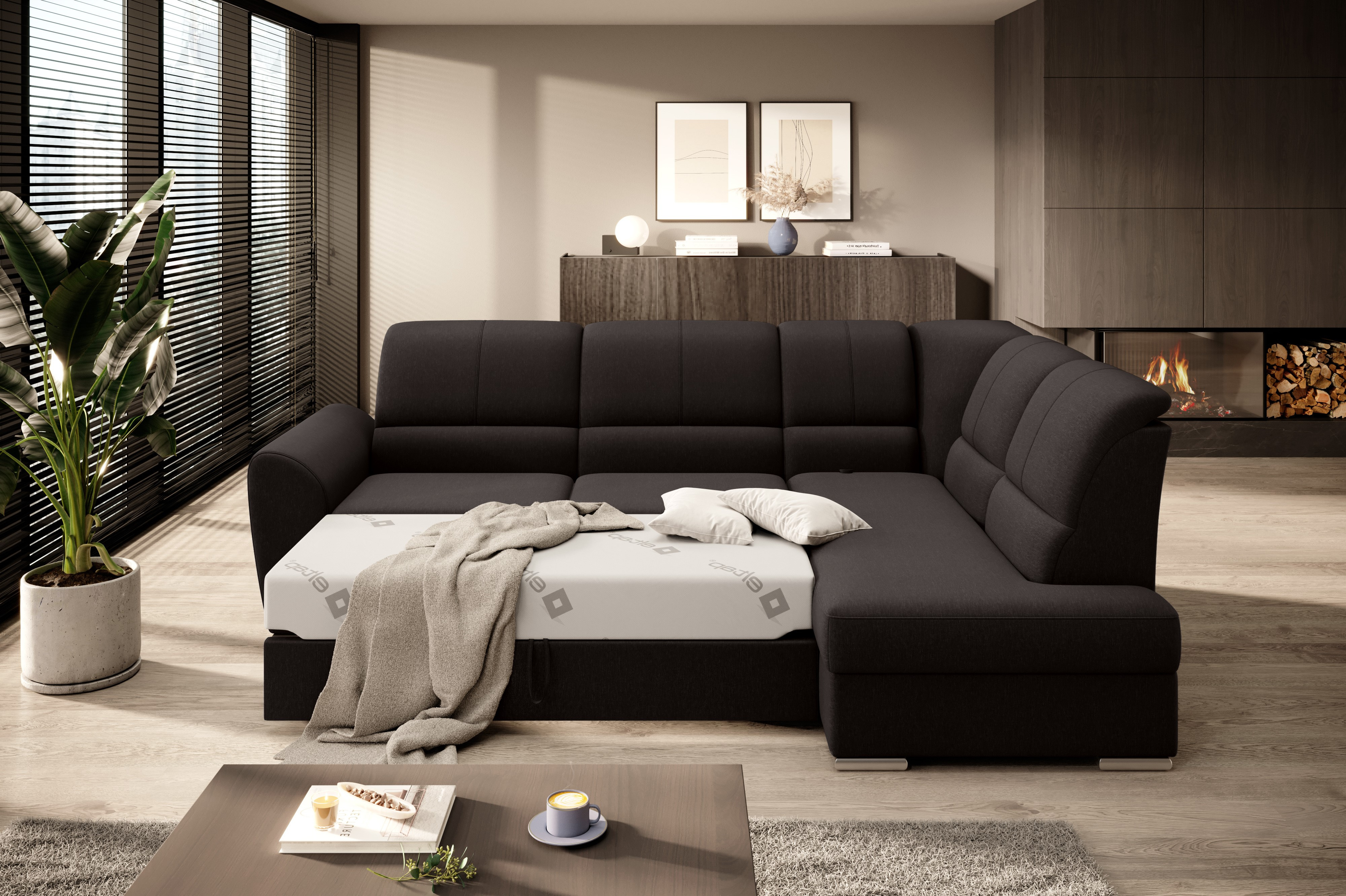 Sedací souprava Siber v provedení Flores 22 má rám z borovicového dřeva. Sedák má vyrobený z odolné vysoce flexibilní HR pěny T3030. Rozkladem DL vznikne spací plocha 205x125 cm. Sedací souprava s vysokými, tvarovanými, nastavitelnými opěradly zdobenými stylovým prošíváním disponuje úložným prostorem. Nosnost pohovky 315 kg. Nohy jsou dřevěné stříbrné o výšce 5 cm. Provedení rohu pravé. Zboží je částečně smontováno.