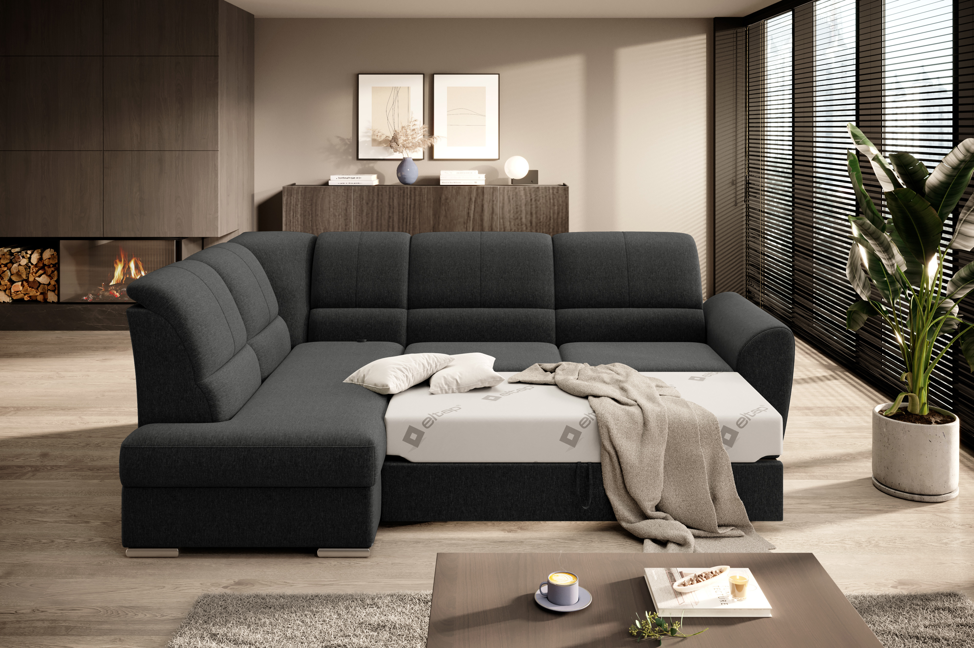 Sedací souprava Siber v provedení Flores 4 má rám z borovicového dřeva. Sedák má vyrobený z odolné vysoce flexibilní HR pěny T3030. Rozkladem DL vznikne spací plocha 205x125 cm. Sedací souprava s vysokými, tvarovanými, nastavitelnými opěradly zdobenými stylovým prošíváním disponuje úložným prostorem. Nosnost pohovky 315 kg. Nohy jsou dřevěné stříbrné o výšce 5 cm. Provedení rohu levé. Zboží je částečně smontováno.