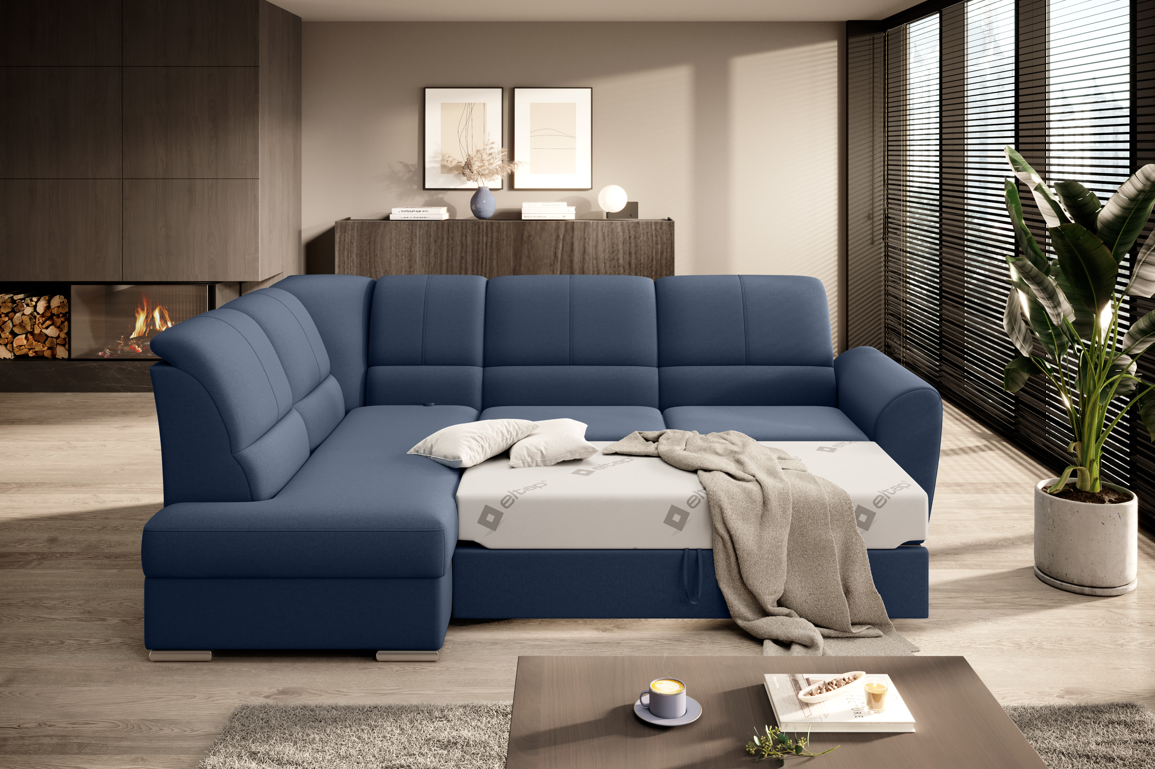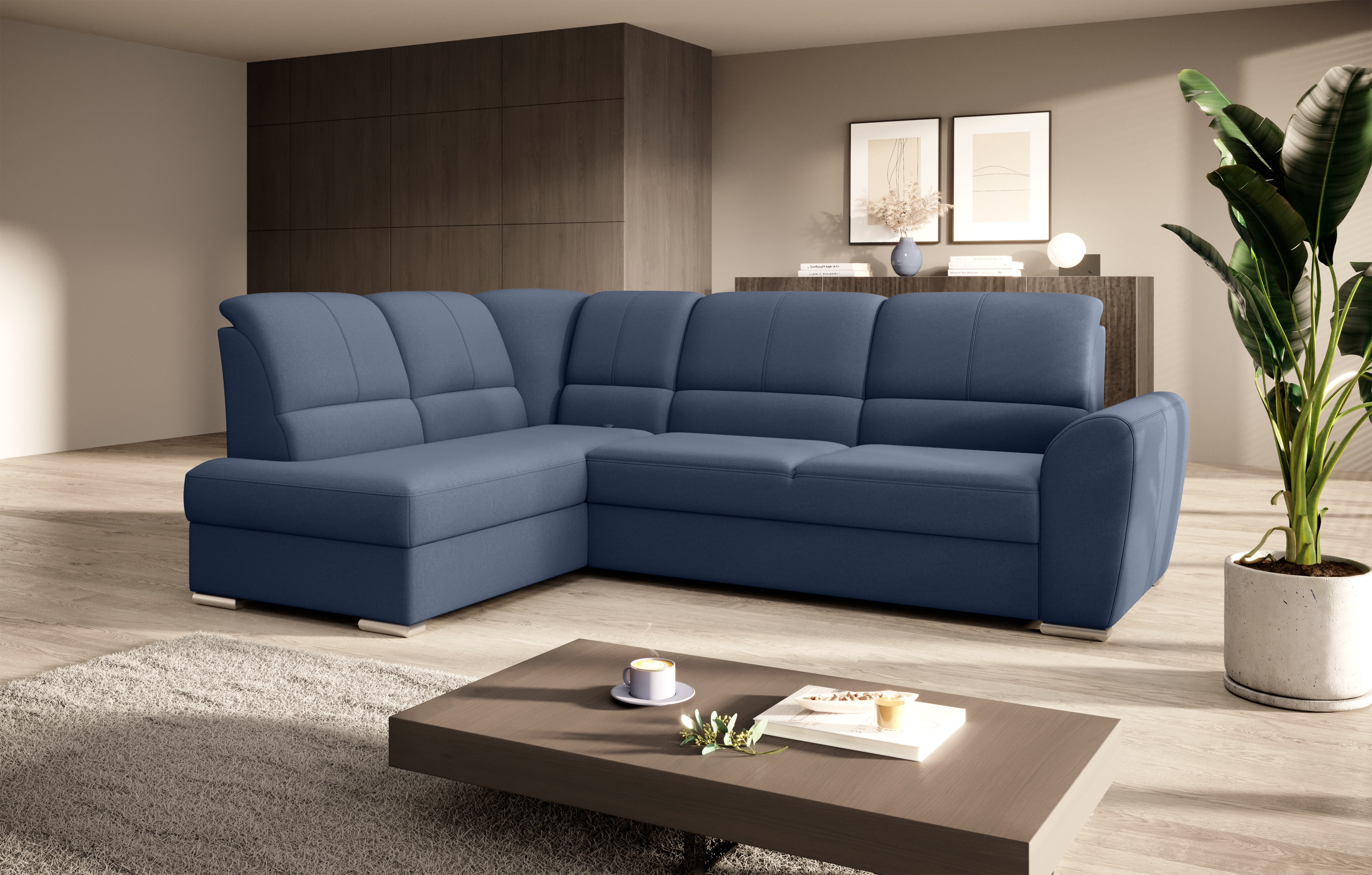 Sedací souprava Siber v provedení Gojo 40 má rám z borovicového dřeva. Sedák má vyrobený z odolné vysoce flexibilní HR pěny T3030. Rozkladem DL vznikne spací plocha 205x125 cm. Sedací souprava s vysokými, tvarovanými, nastavitelnými opěradly zdobenými stylovým prošíváním disponuje úložným prostorem. Nosnost pohovky 315 kg. Nohy jsou dřevěné stříbrné o výšce 5 cm. Provedení rohu levé. Zboží je částečně smontováno.