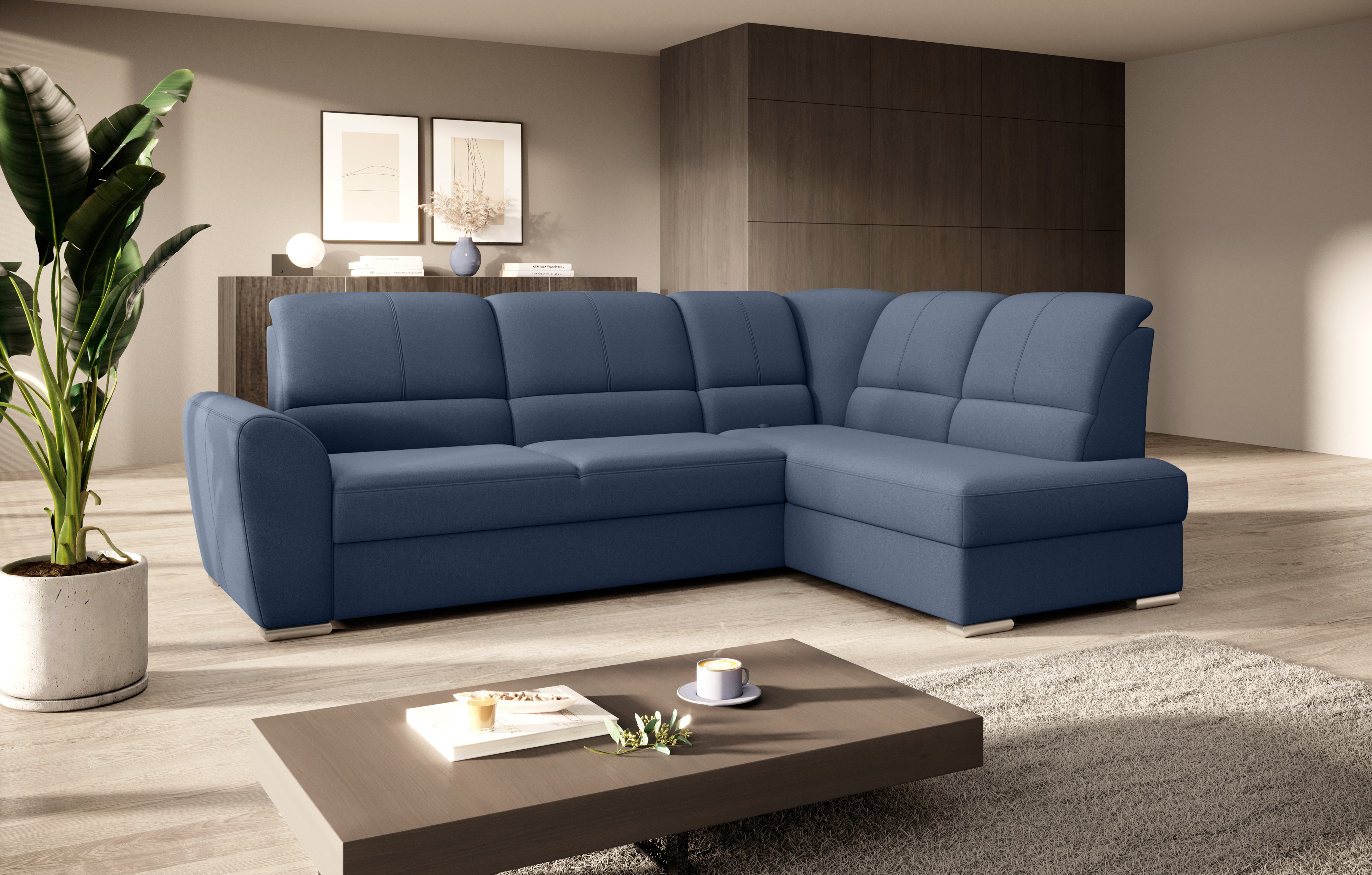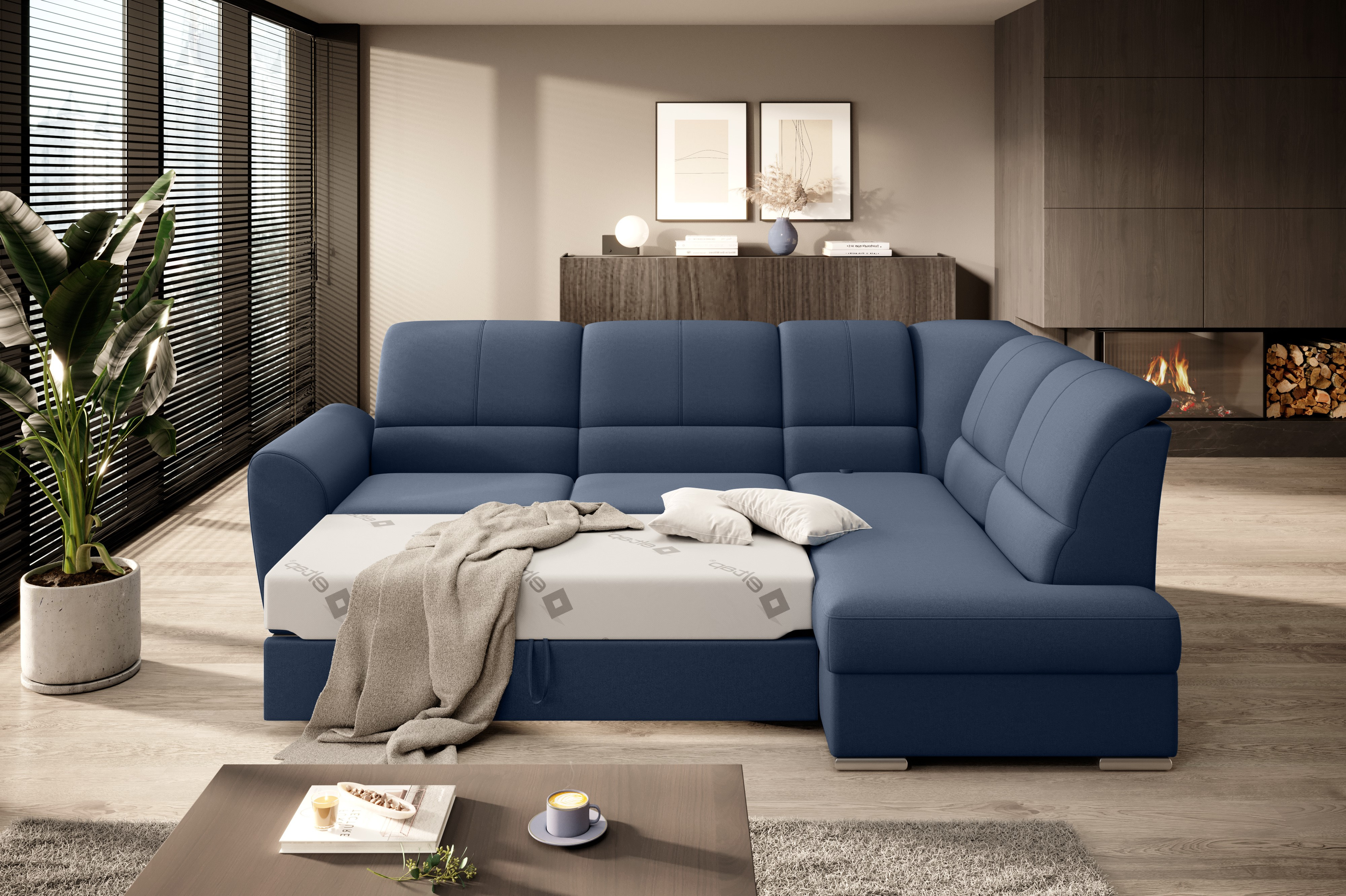 Sedací souprava Siber v provedení Gojo 40 má rám z borovicového dřeva. Sedák má vyrobený z odolné vysoce flexibilní HR pěny T3030. Rozkladem DL vznikne spací plocha 205x125 cm. Sedací souprava s vysokými, tvarovanými, nastavitelnými opěradly zdobenými stylovým prošíváním disponuje úložným prostorem. Nosnost pohovky 315 kg. Nohy jsou dřevěné stříbrné o výšce 5 cm. Provedení rohu pravé. Zboží je částečně smontováno.