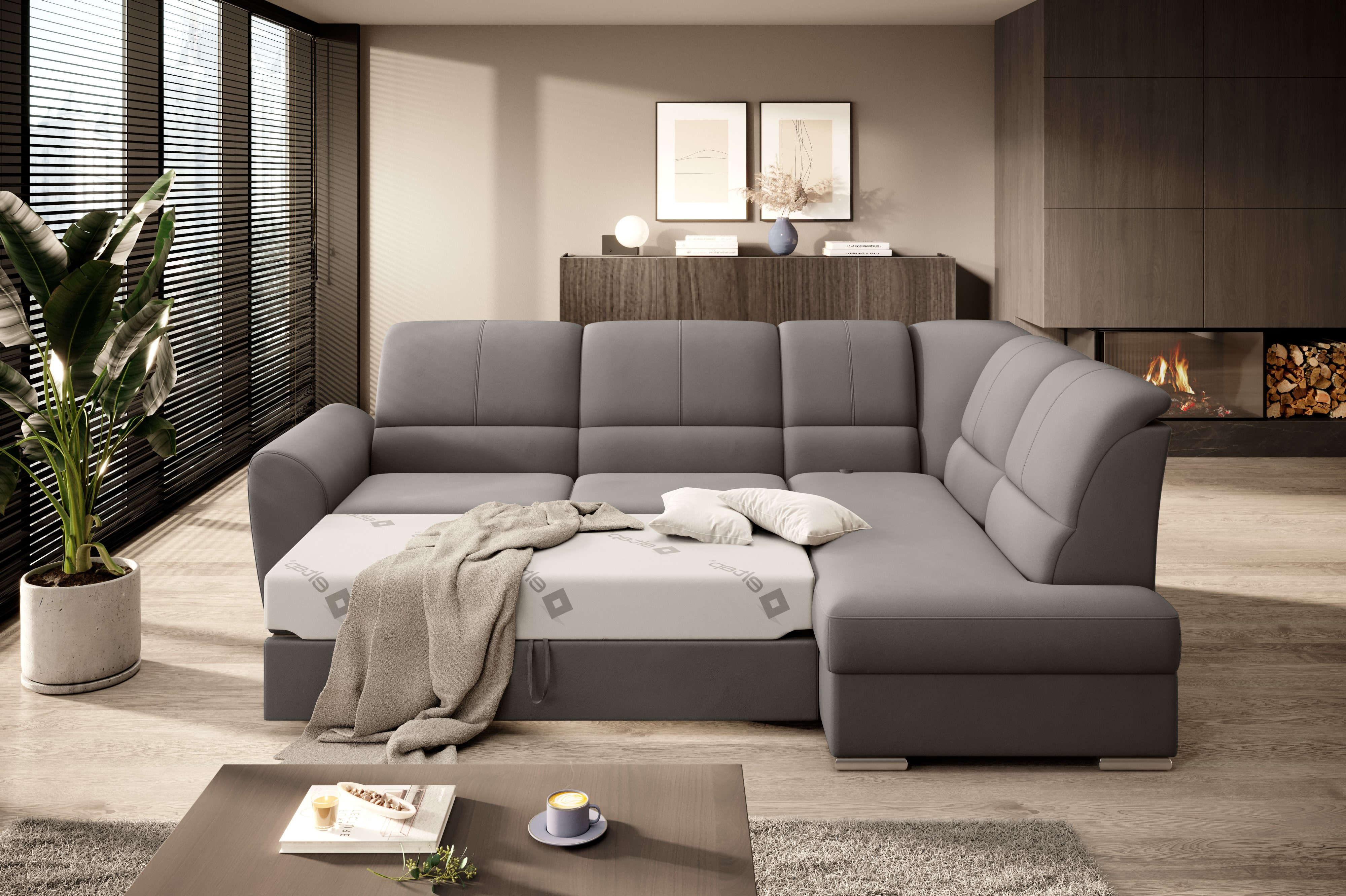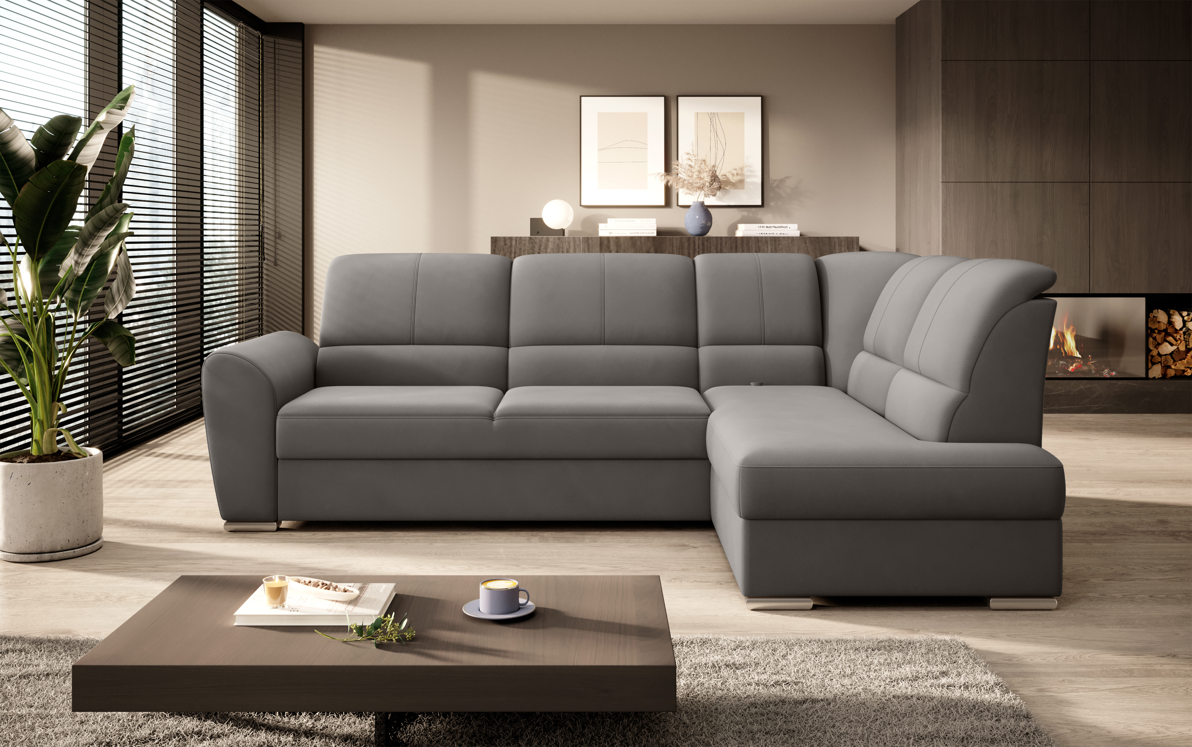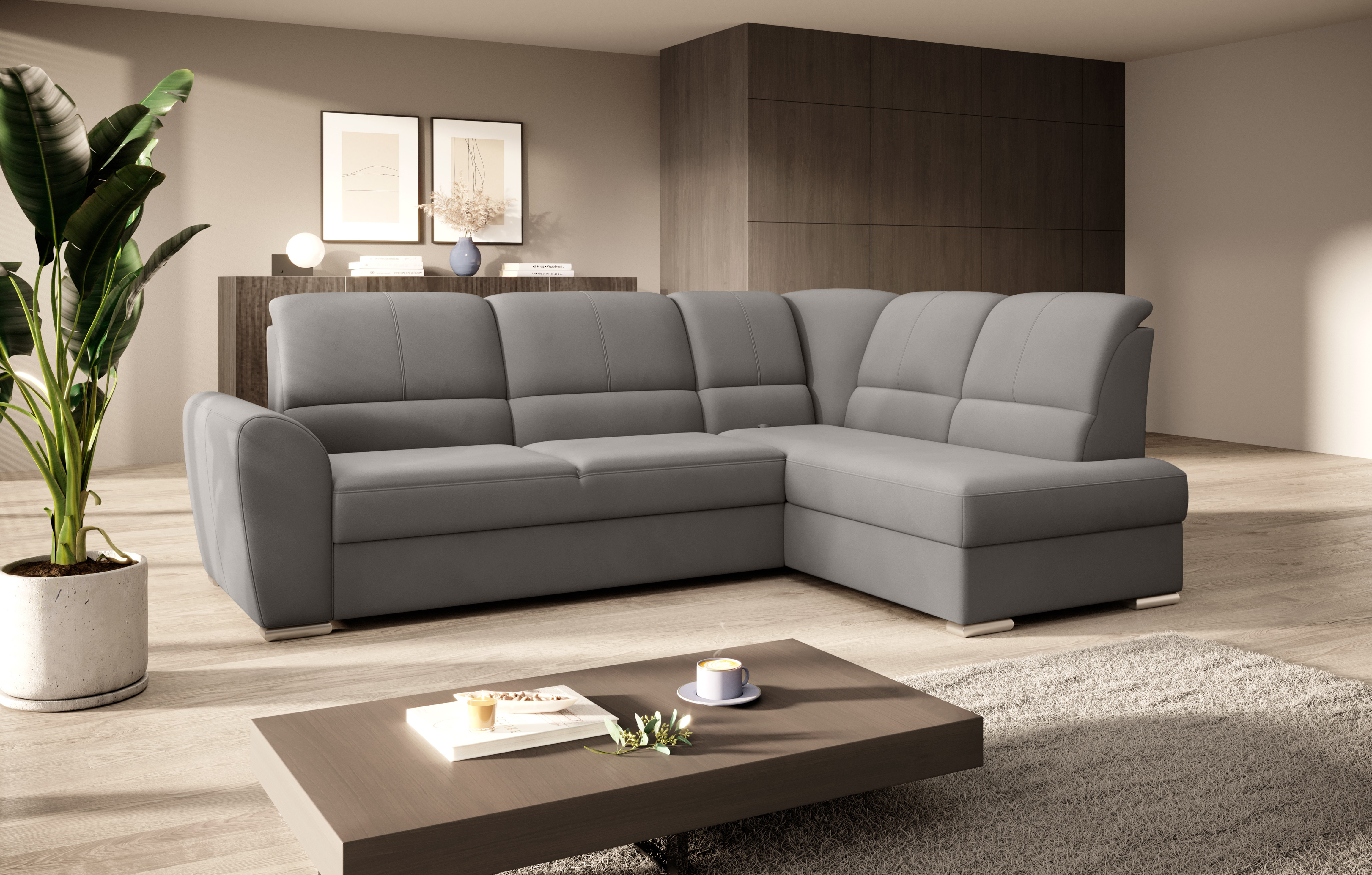 Sedací souprava Siber v provedení Loco 4 má rám z borovicového dřeva. Sedák má vyrobený z odolné vysoce flexibilní HR pěny T3030. Rozkladem DL vznikne spací plocha 205x125 cm. Sedací souprava s vysokými, tvarovanými, nastavitelnými opěradly zdobenými stylovým prošíváním disponuje úložným prostorem. Nosnost pohovky 315 kg. Nohy jsou dřevěné stříbrné o výšce 5 cm. Provedení rohu pravé. Zboží je částečně smontováno.