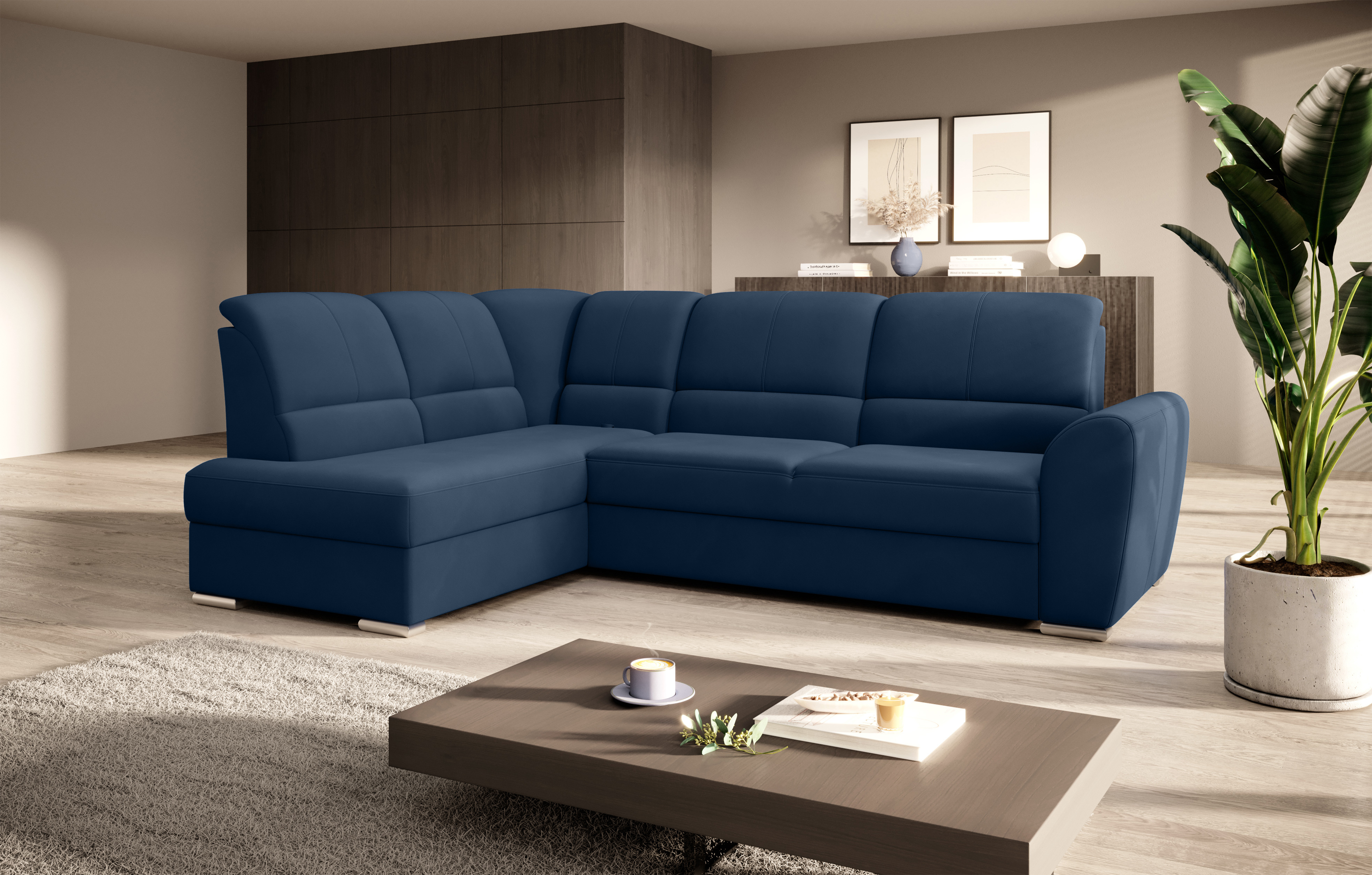Sedací souprava Siber v provedení Loco 40 má rám z borovicového dřeva. Sedák má vyrobený z odolné vysoce flexibilní HR pěny T3030. Rozkladem DL vznikne spací plocha 205x125 cm. Sedací souprava s vysokými, tvarovanými, nastavitelnými opěradly zdobenými stylovým prošíváním disponuje úložným prostorem. Nosnost pohovky 315 kg. Nohy jsou dřevěné stříbrné o výšce 5 cm. Provedení rohu levé. Zboží je částečně smontováno.