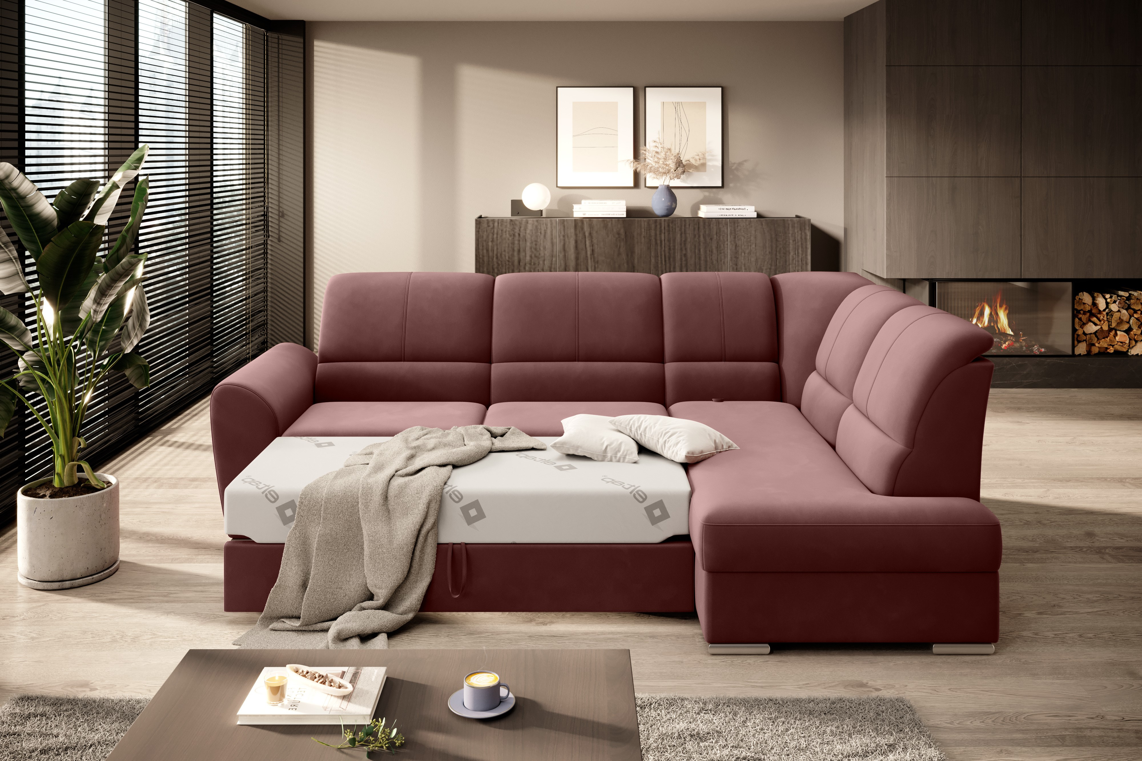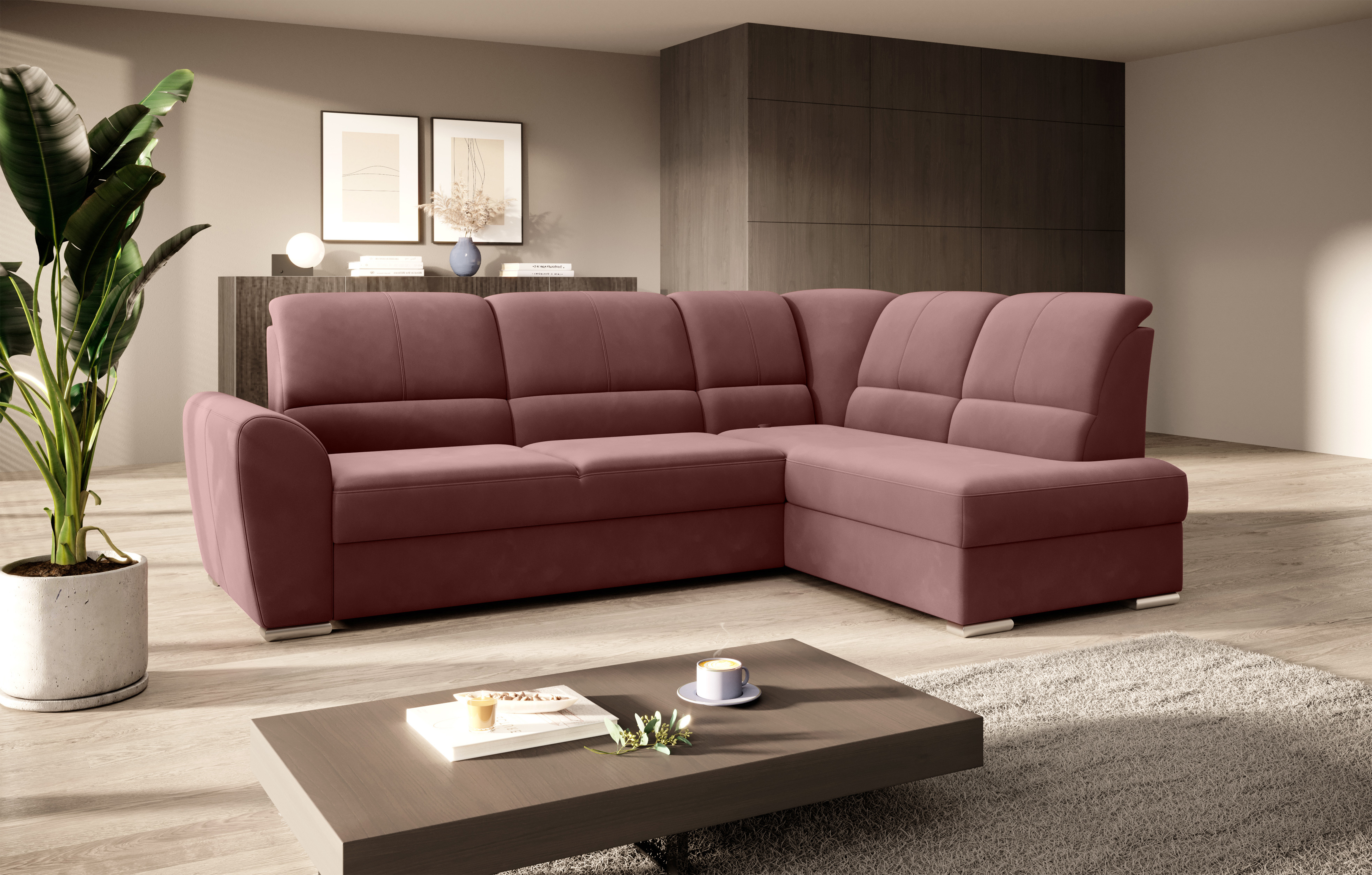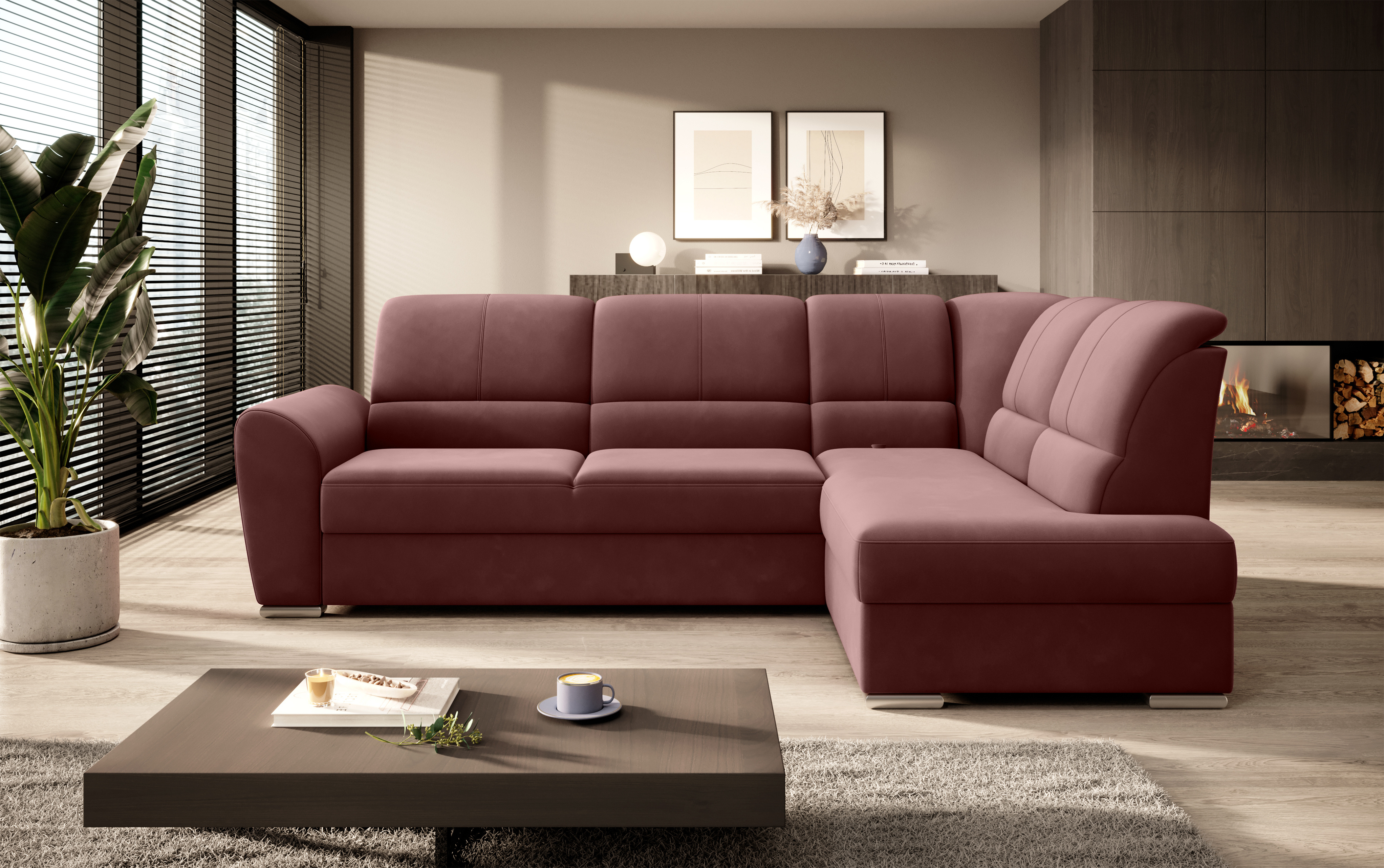 Sedací souprava Siber v provedení Lukso 24 má rám z borovicového dřeva. Sedák má vyrobený z odolné vysoce flexibilní HR pěny T3030. Rozkladem DL vznikne spací plocha 205x125 cm. Sedací souprava s vysokými, tvarovanými, nastavitelnými opěradly zdobenými stylovým prošíváním disponuje úložným prostorem. Nosnost pohovky 315 kg. Nohy jsou dřevěné stříbrné o výšce 5 cm. Provedení rohu pravé. Zboží je částečně smontováno.