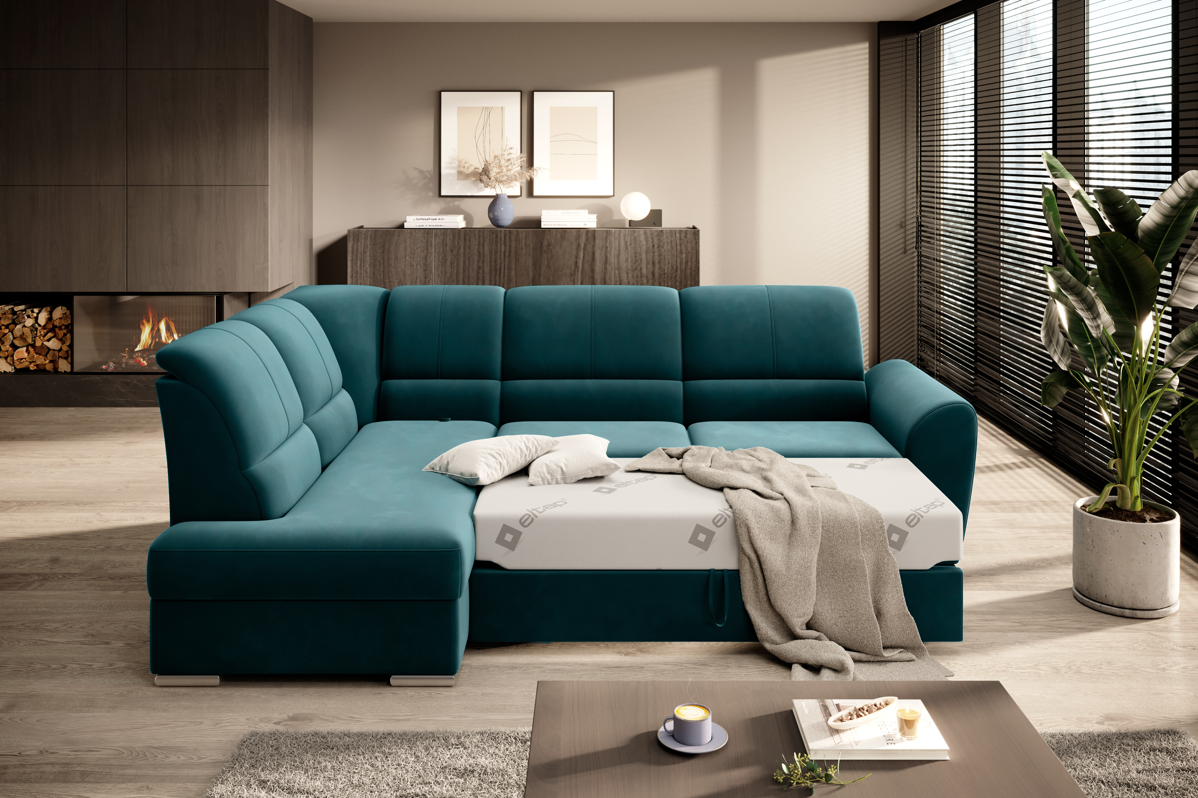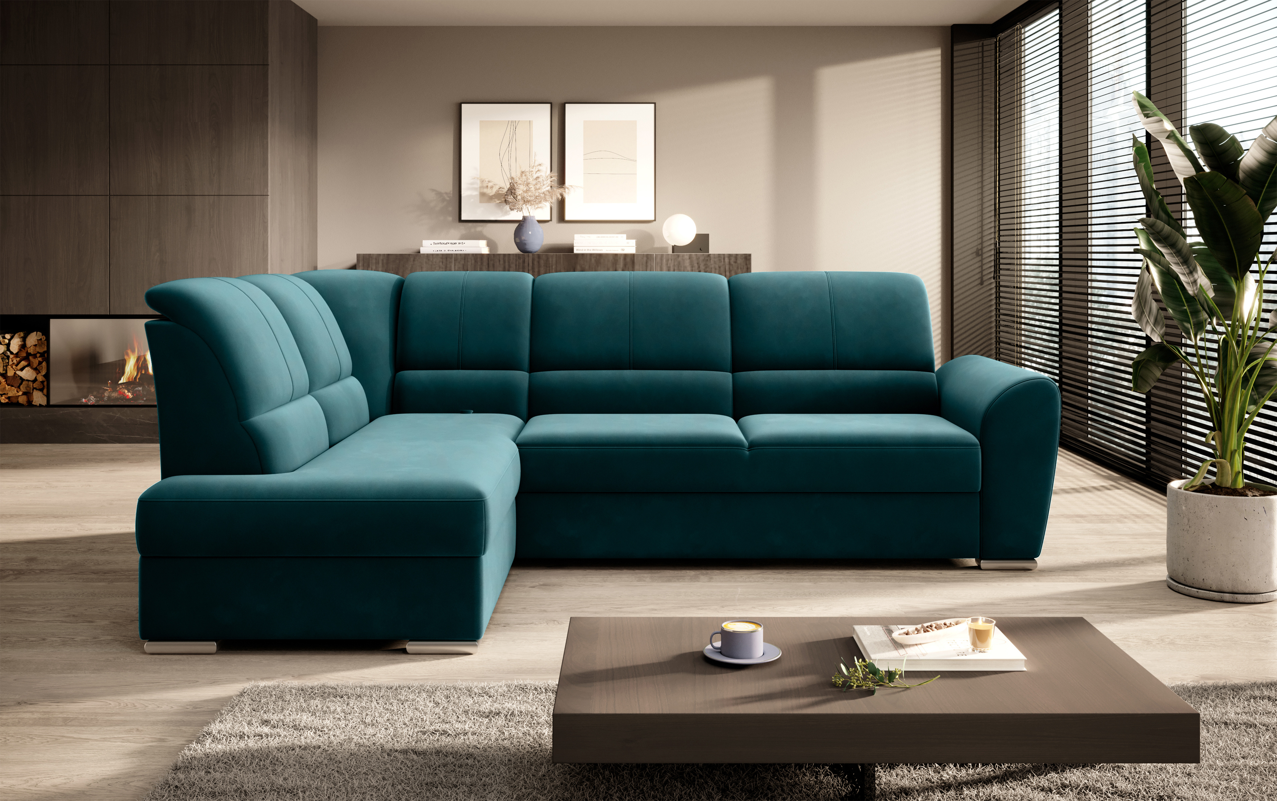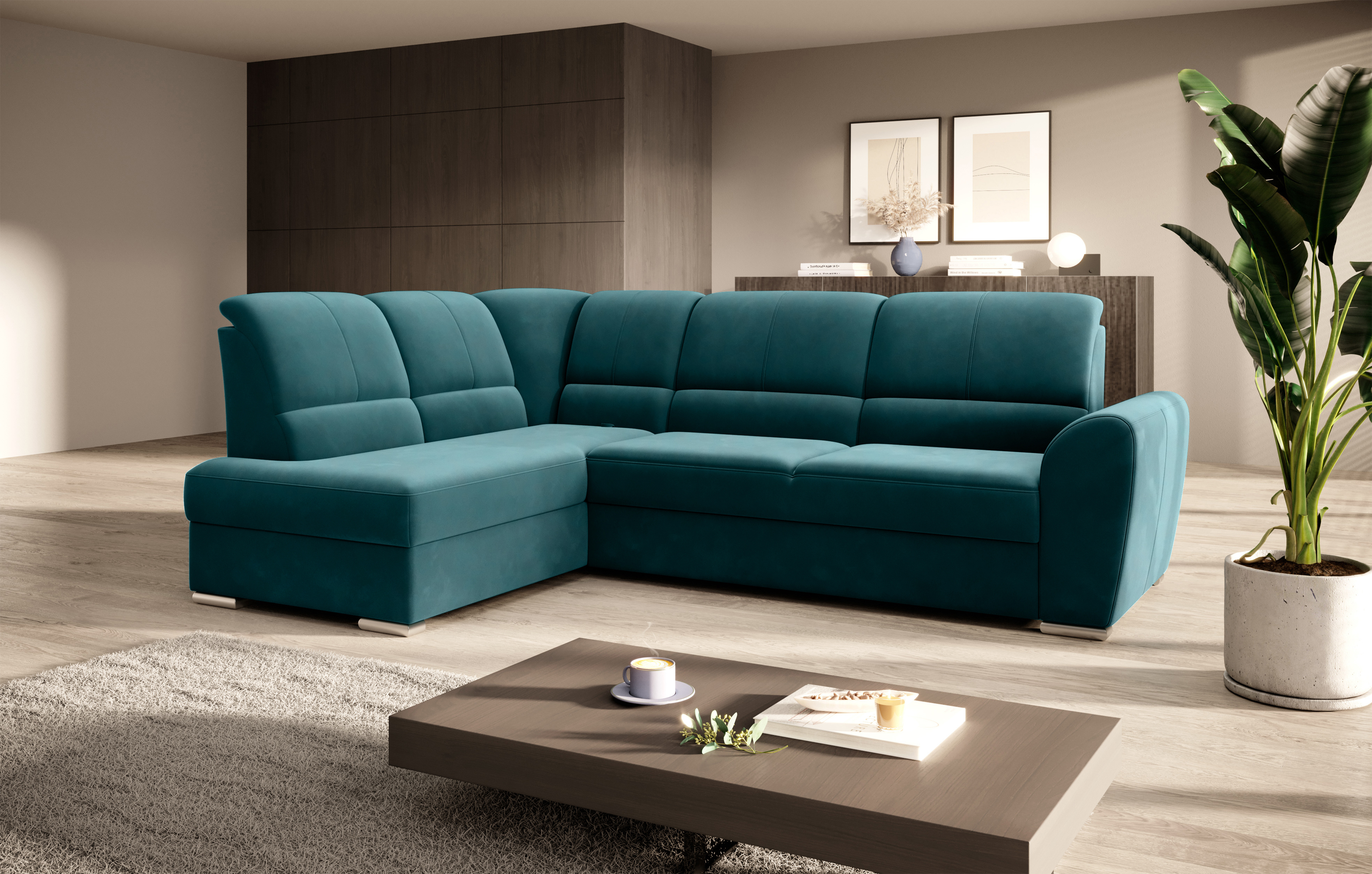 Sedací souprava Siber v provedení Lukso 39 má rám z borovicového dřeva. Sedák má vyrobený z odolné vysoce flexibilní HR pěny T3030. Rozkladem DL vznikne spací plocha 205x125 cm. Sedací souprava s vysokými, tvarovanými, nastavitelnými opěradly zdobenými stylovým prošíváním disponuje úložným prostorem. Nosnost pohovky 315 kg. Nohy jsou dřevěné stříbrné o výšce 5 cm. Provedení rohu levé. Zboží je částečně smontováno.