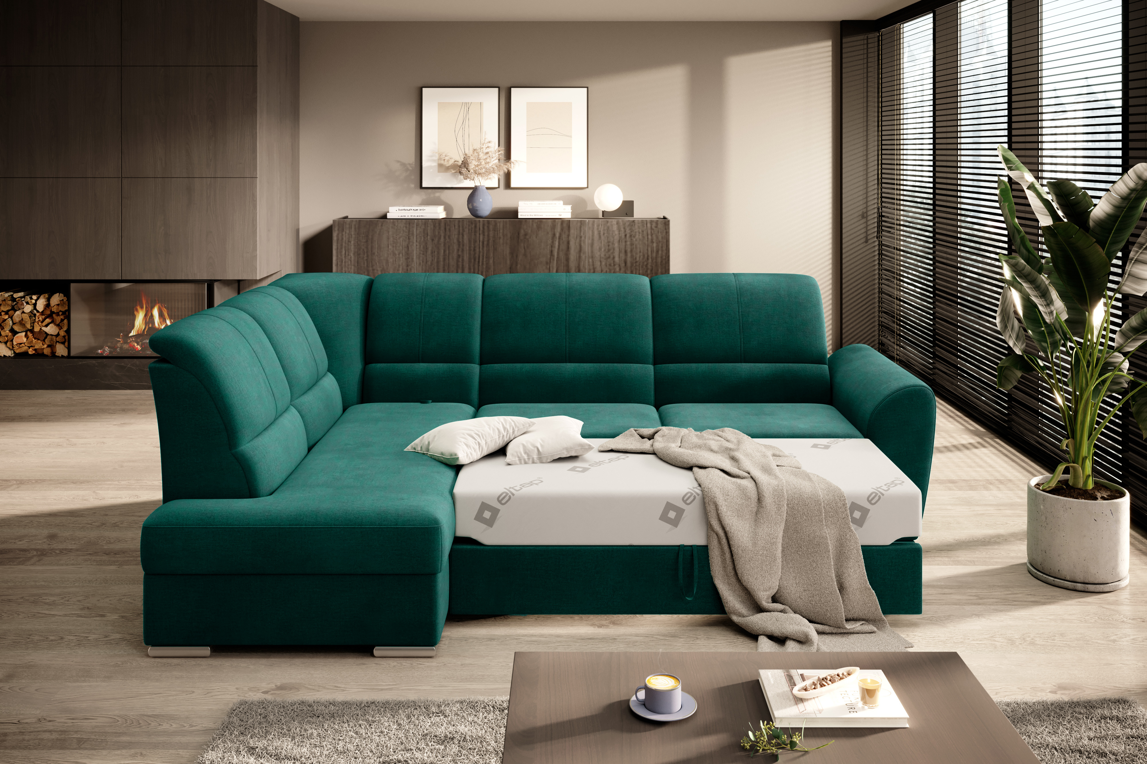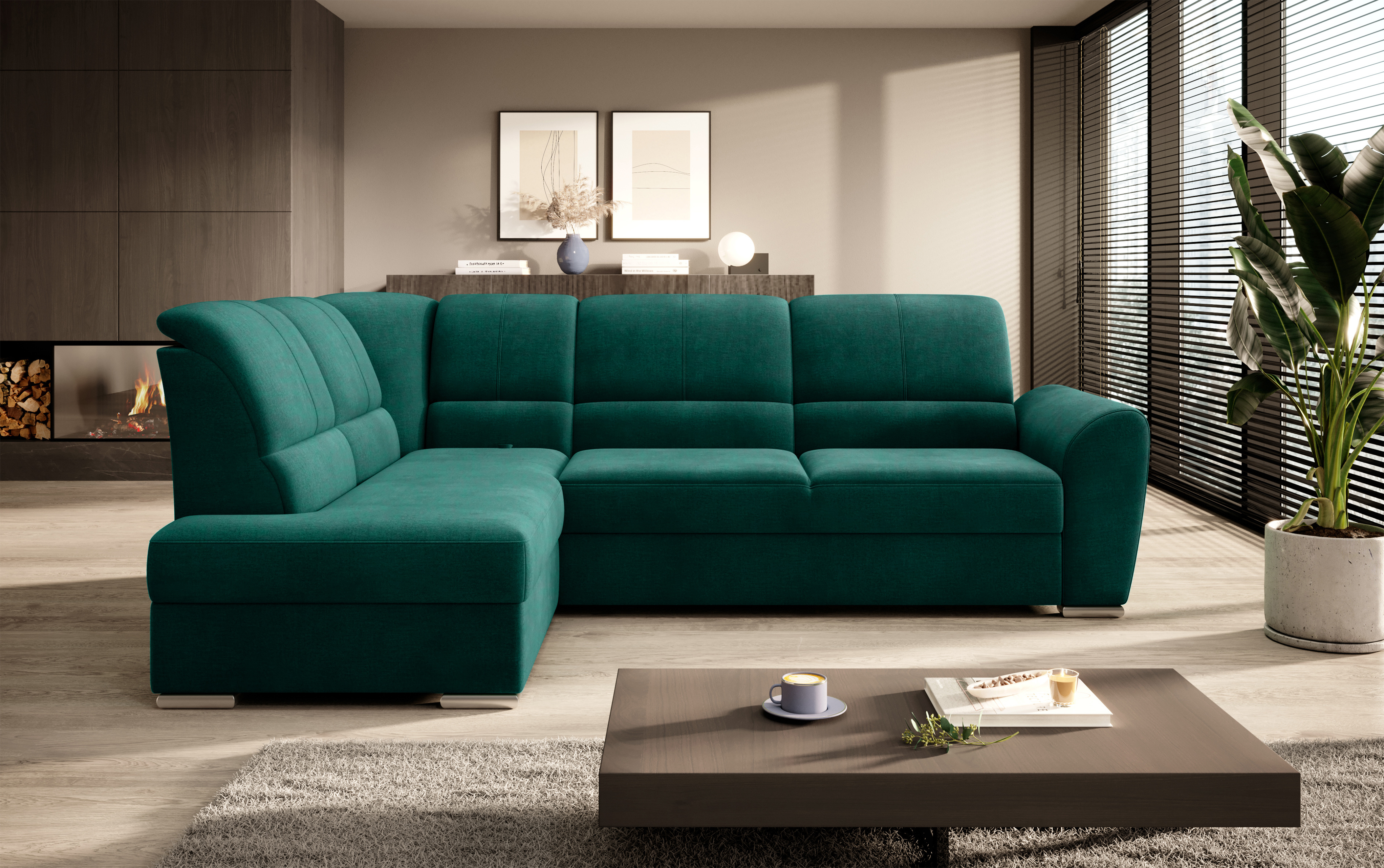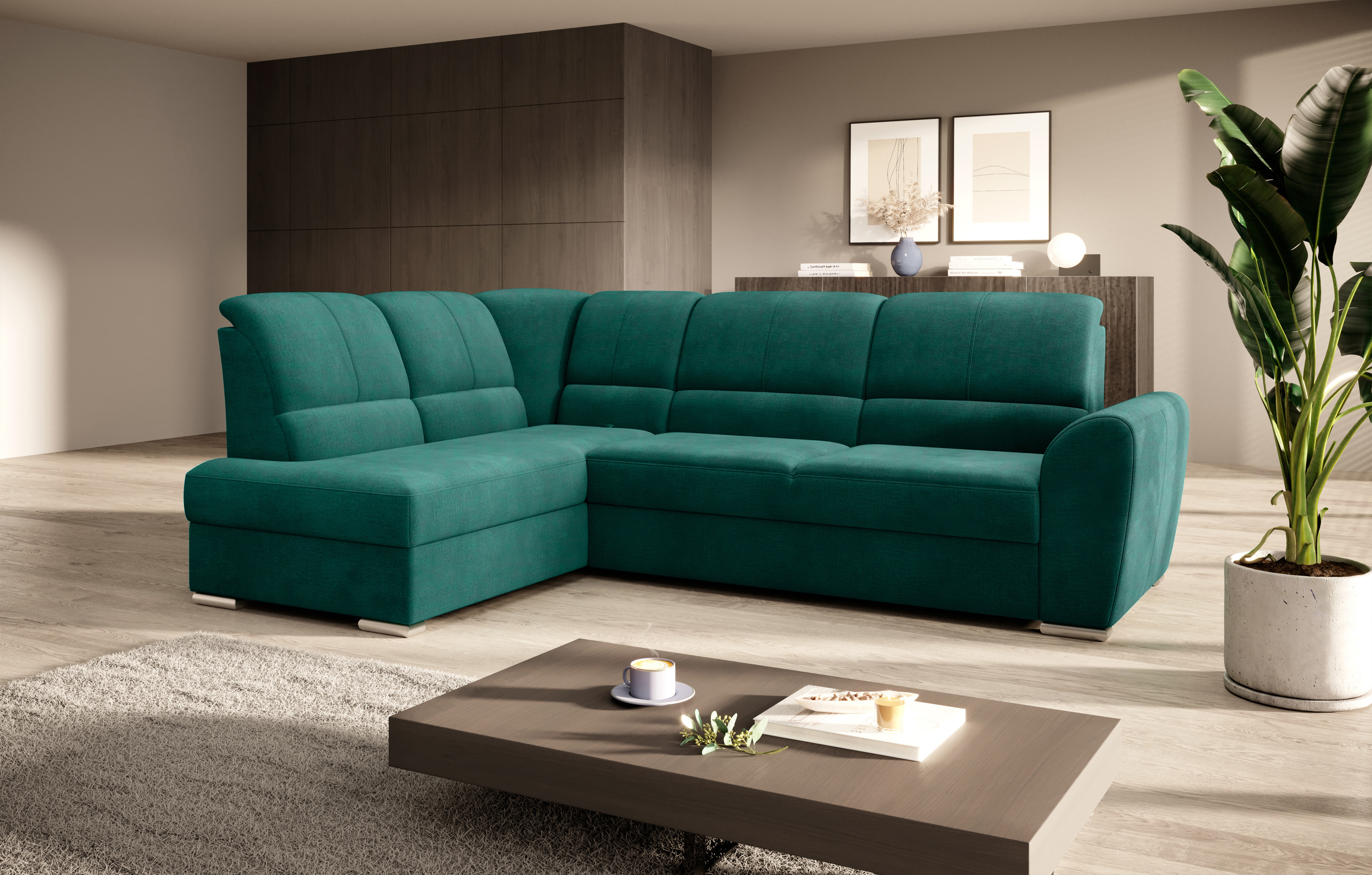 Sedací souprava Siber v provedení Nube 35 má rám z borovicového dřeva. Sedák má vyrobený z odolné vysoce flexibilní HR pěny T3030. Rozkladem DL vznikne spací plocha 205x125 cm. Sedací souprava s vysokými, tvarovanými, nastavitelnými opěradly zdobenými stylovým prošíváním disponuje úložným prostorem. Nosnost pohovky 315 kg. Nohy jsou dřevěné stříbrné o výšce 5 cm. Provedení rohu levé. Zboží je částečně smontováno.