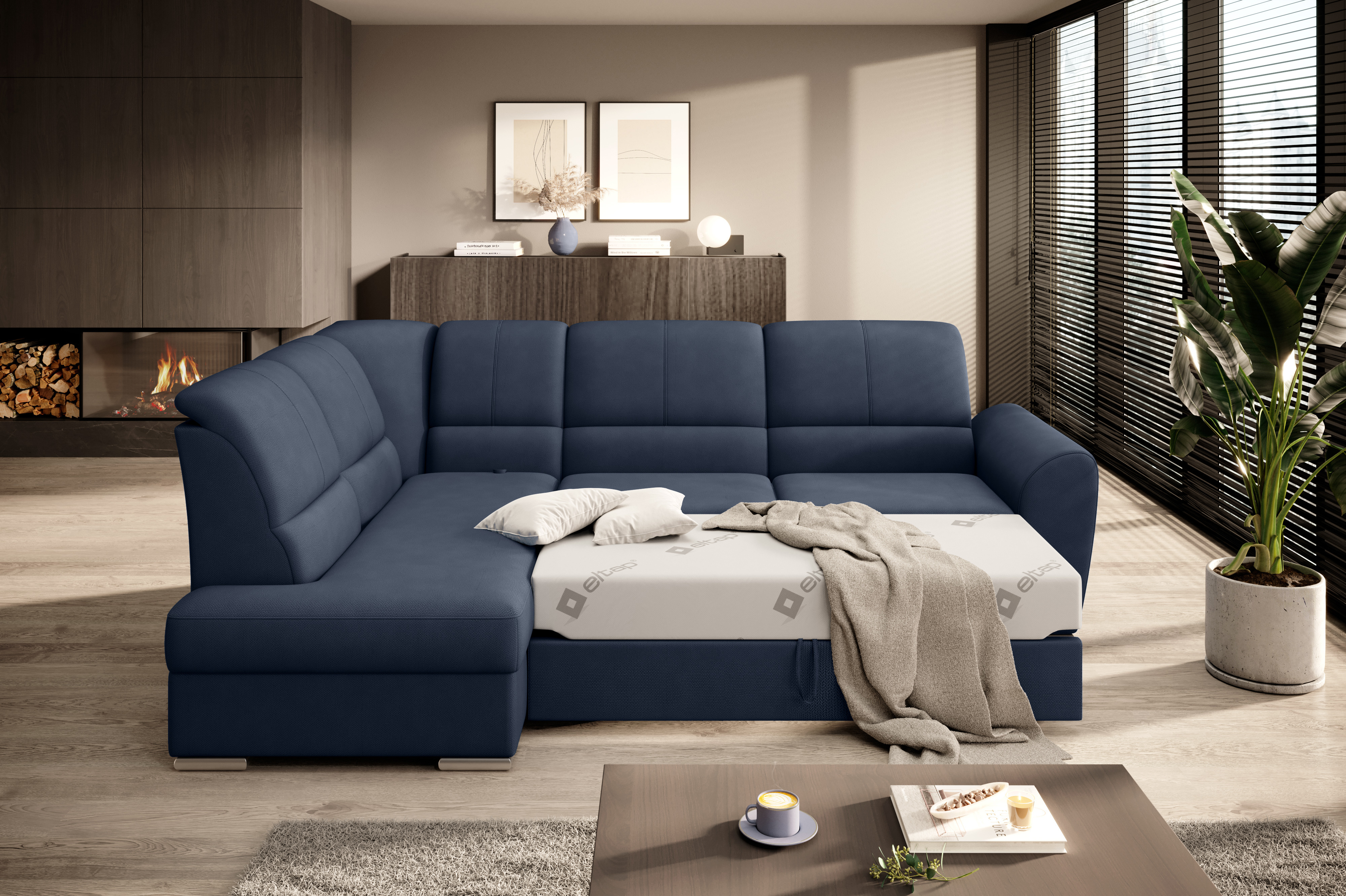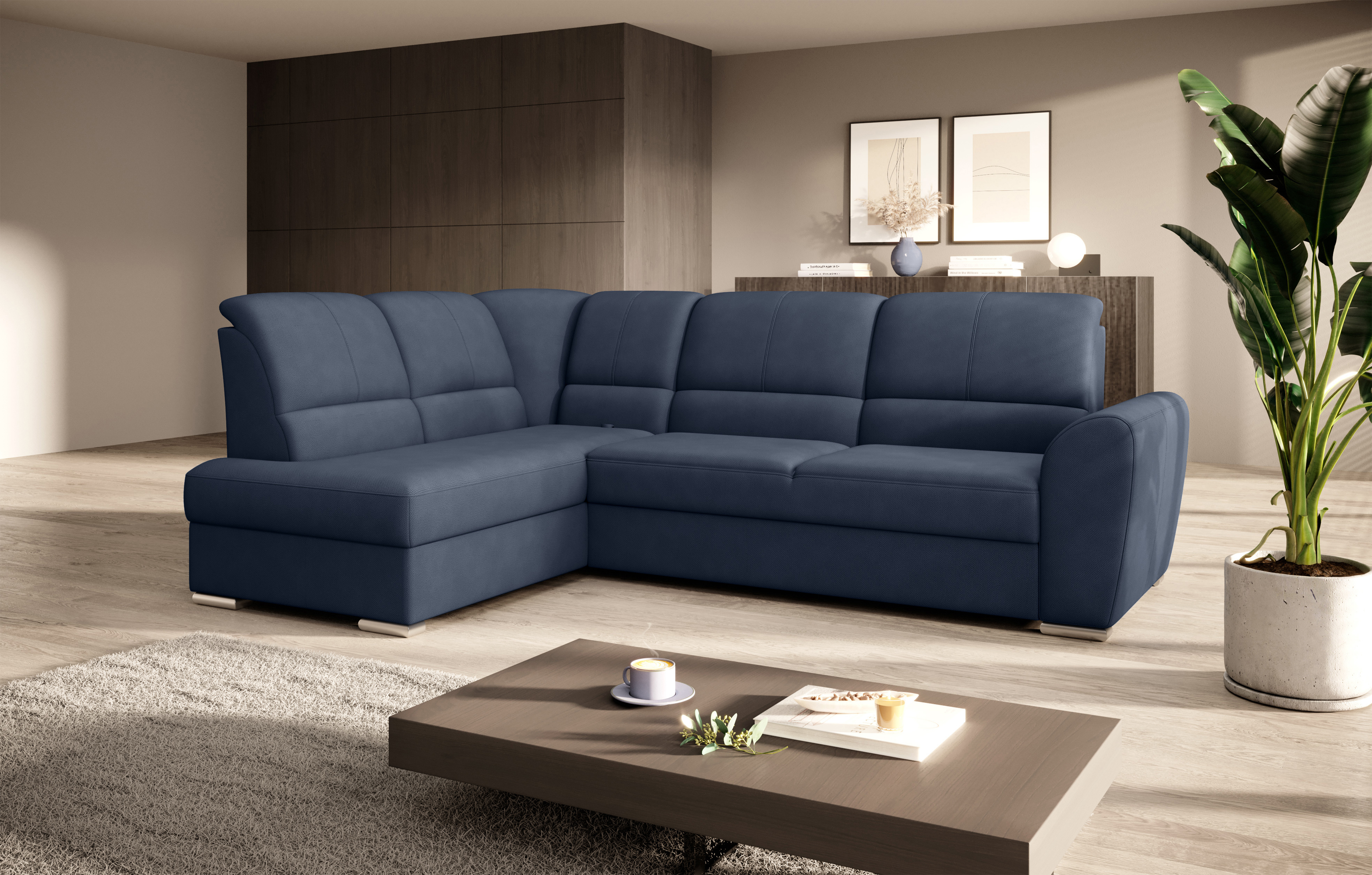 Sedací souprava Siber v provedení Poco 4 má rám z borovicového dřeva. Sedák má vyrobený z odolné vysoce flexibilní HR pěny T3030. Rozkladem DL vznikne spací plocha 205x125 cm. Sedací souprava s vysokými, tvarovanými, nastavitelnými opěradly zdobenými stylovým prošíváním disponuje úložným prostorem. Nosnost pohovky 315 kg. Nohy jsou dřevěné stříbrné o výšce 5 cm. Provedení rohu levé. Zboží je částečně smontováno.