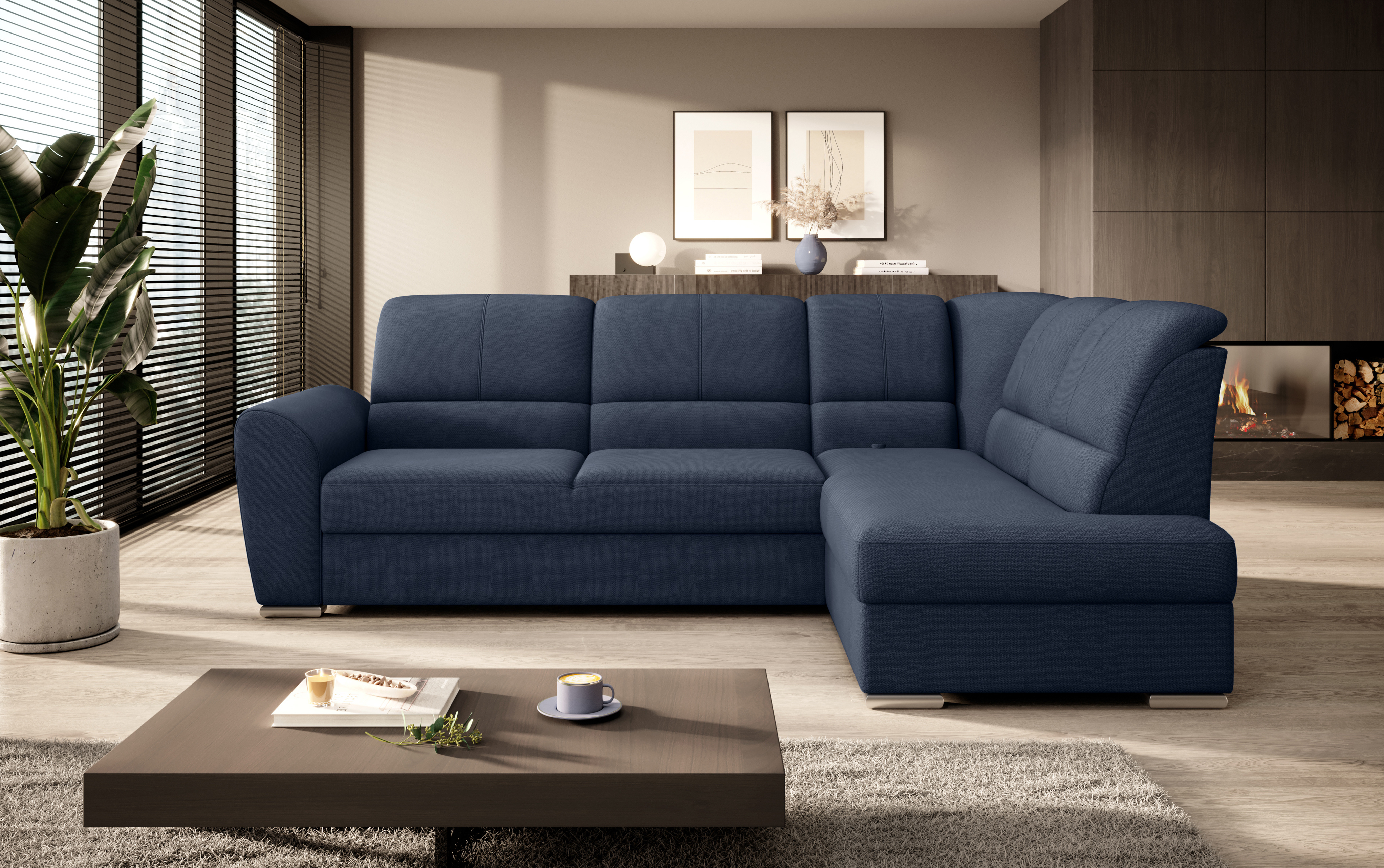 Sedací souprava Siber v provedení Poco 4 má rám z borovicového dřeva. Sedák má vyrobený z odolné vysoce flexibilní HR pěny T3030. Rozkladem DL vznikne spací plocha 205x125 cm. Sedací souprava s vysokými, tvarovanými, nastavitelnými opěradly zdobenými stylovým prošíváním disponuje úložným prostorem. Nosnost pohovky 315 kg. Nohy jsou dřevěné stříbrné o výšce 5 cm. Provedení rohu pravé. Zboží je částečně smontováno.