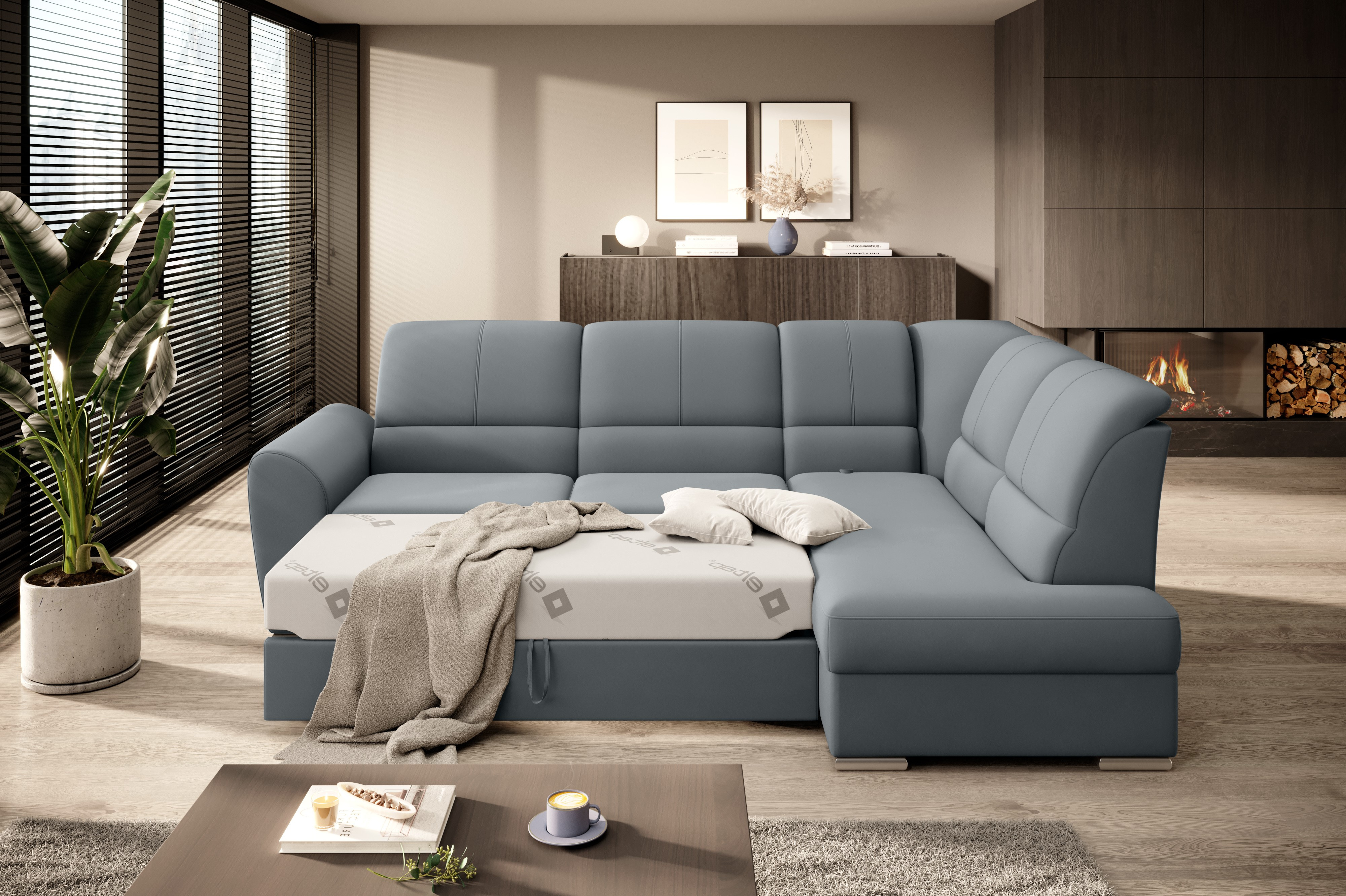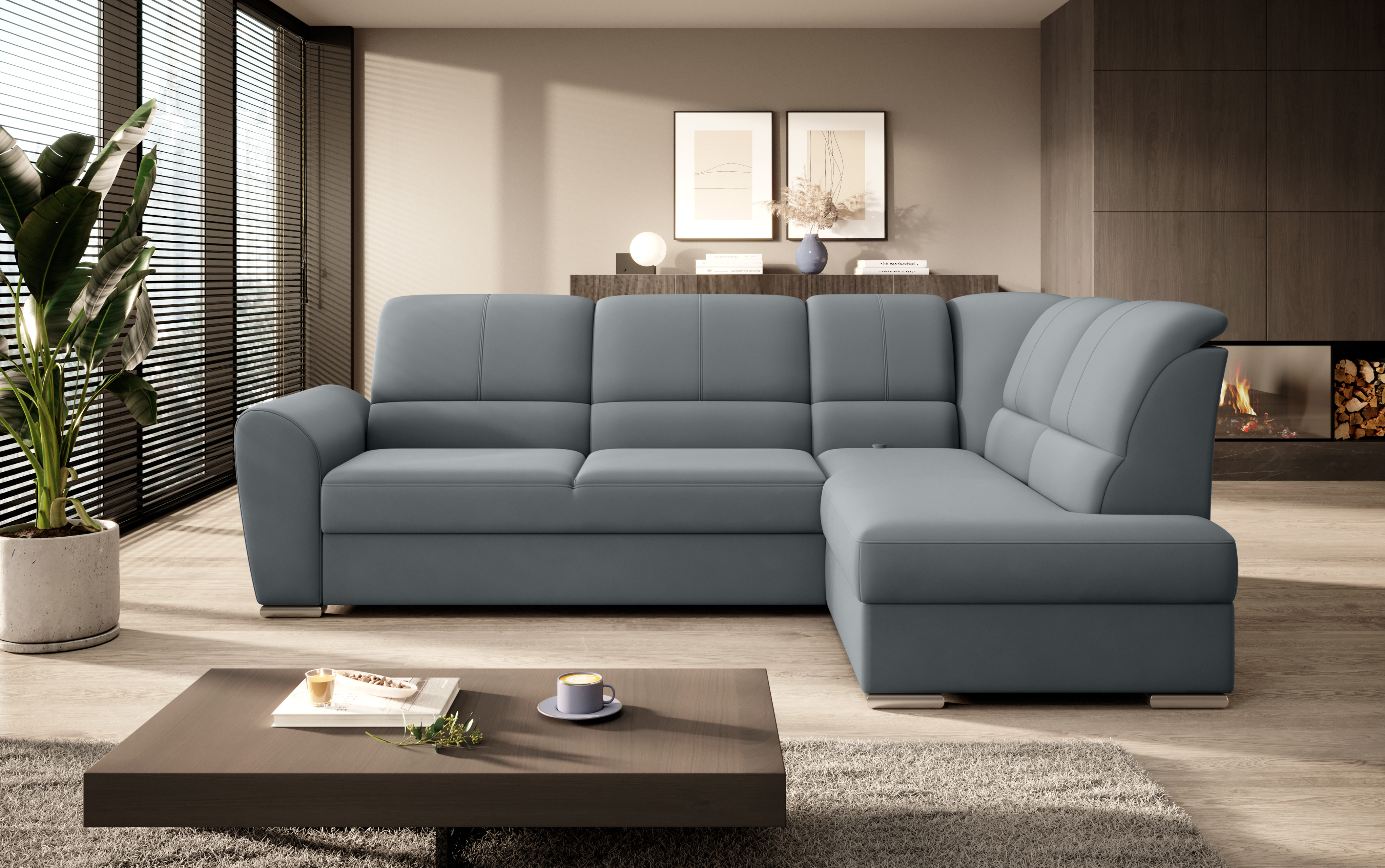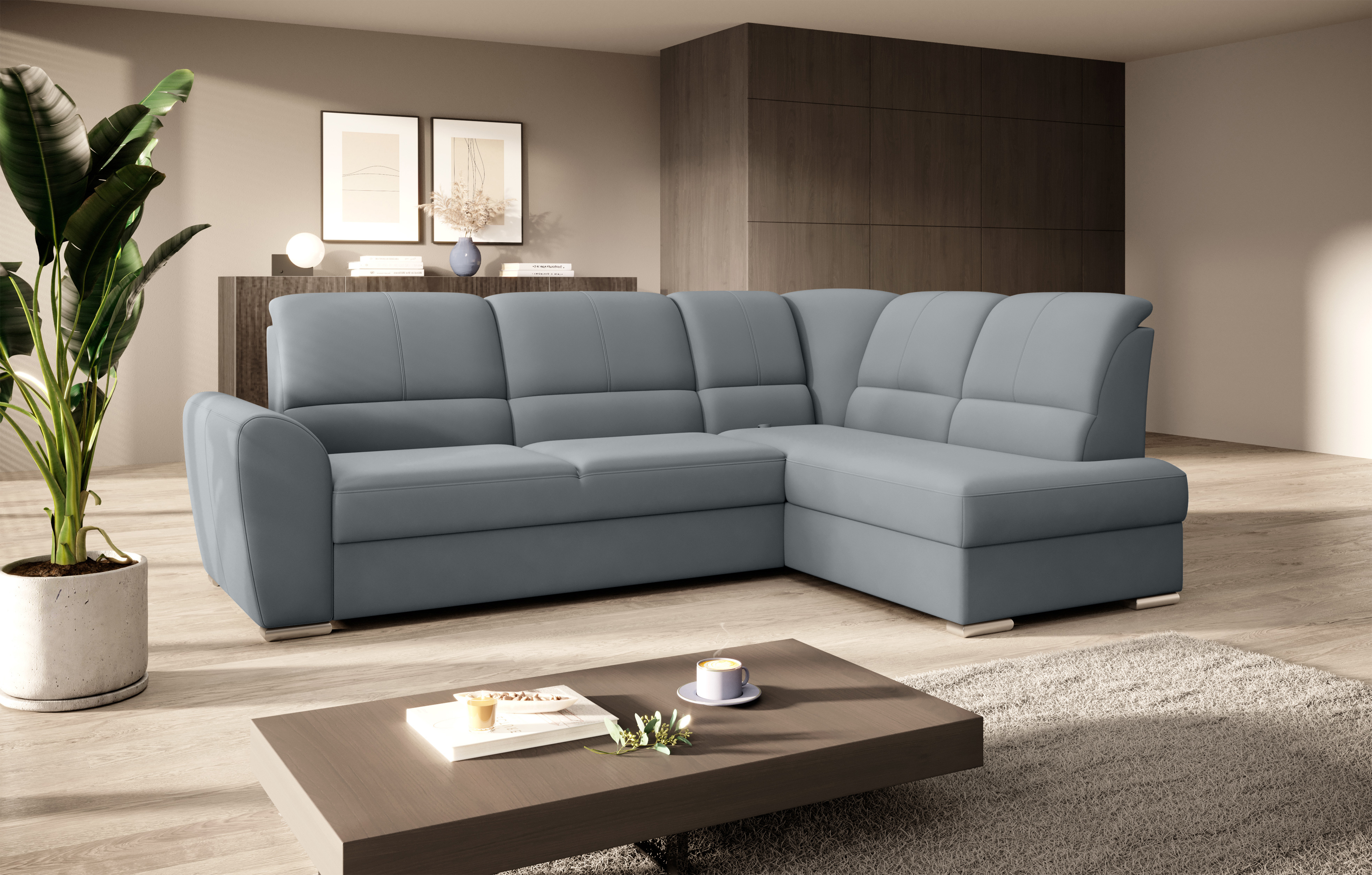 Sedací souprava Siber v provedení Velvetmat 4 má rám z borovicového dřeva. Sedák má vyrobený z odolné vysoce flexibilní HR pěny T3030. Rozkladem DL vznikne spací plocha 205x125 cm. Sedací souprava s vysokými, tvarovanými, nastavitelnými opěradly zdobenými stylovým prošíváním disponuje úložným prostorem. Nosnost pohovky 315 kg. Nohy jsou dřevěné stříbrné o výšce 5 cm. Provedení rohu pravé. Zboží je částečně smontováno.