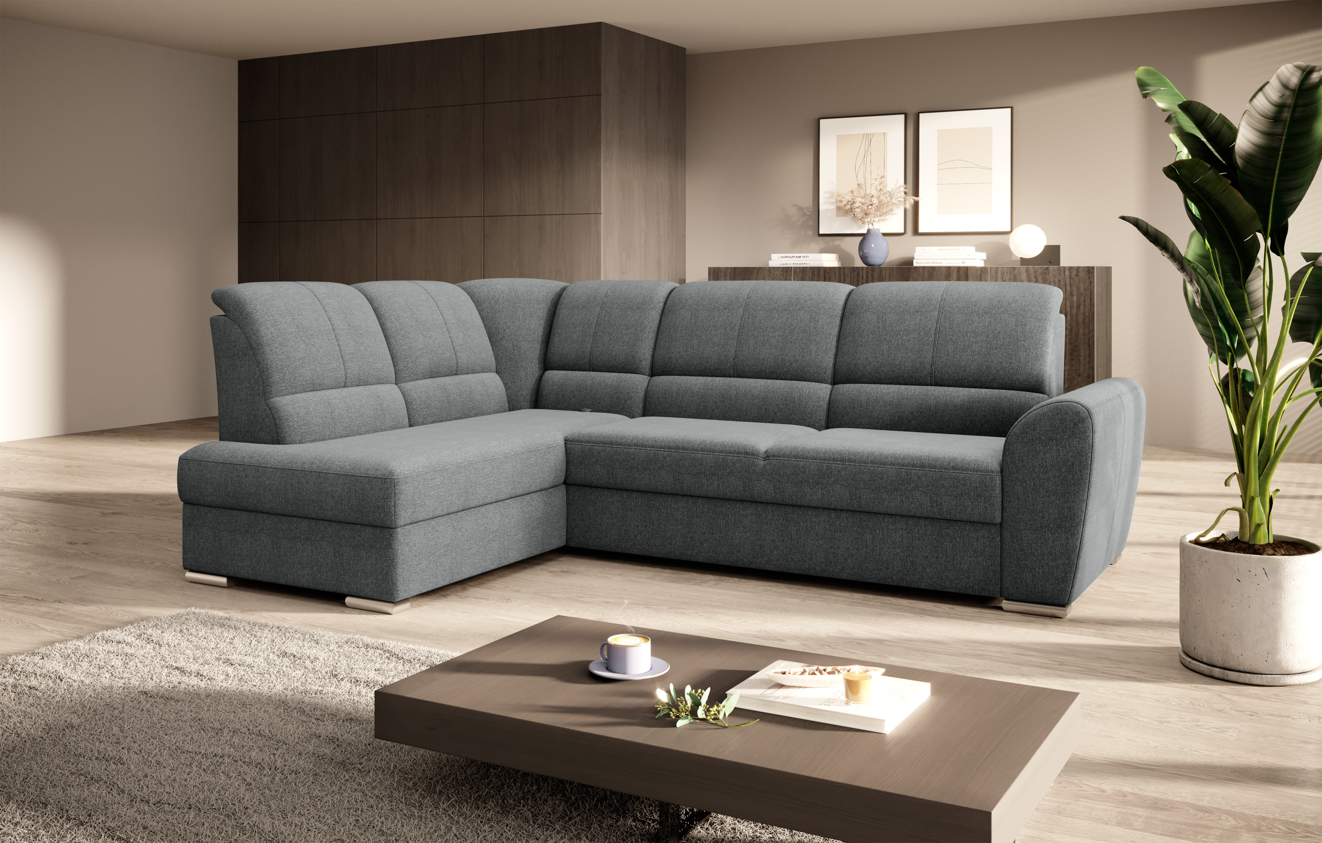 Sedací souprava Siber v provedení Vero 5 má rám z borovicového dřeva. Sedák má vyrobený z odolné vysoce flexibilní HR pěny T3030. Rozkladem DL vznikne spací plocha 205x125 cm. Sedací souprava s vysokými, tvarovanými, nastavitelnými opěradly zdobenými stylovým prošíváním disponuje úložným prostorem. Nosnost pohovky 315 kg. Nohy jsou dřevěné stříbrné o výšce 5 cm. Provedení rohu levé. Zboží je částečně smontováno.