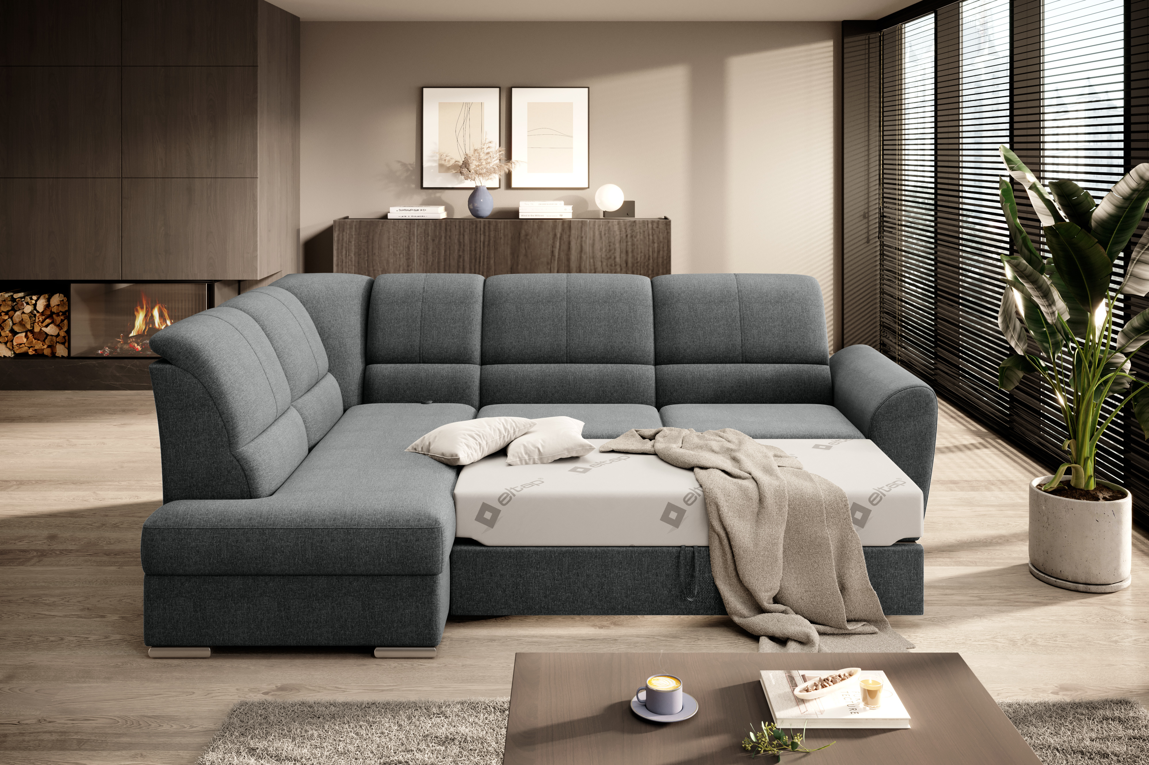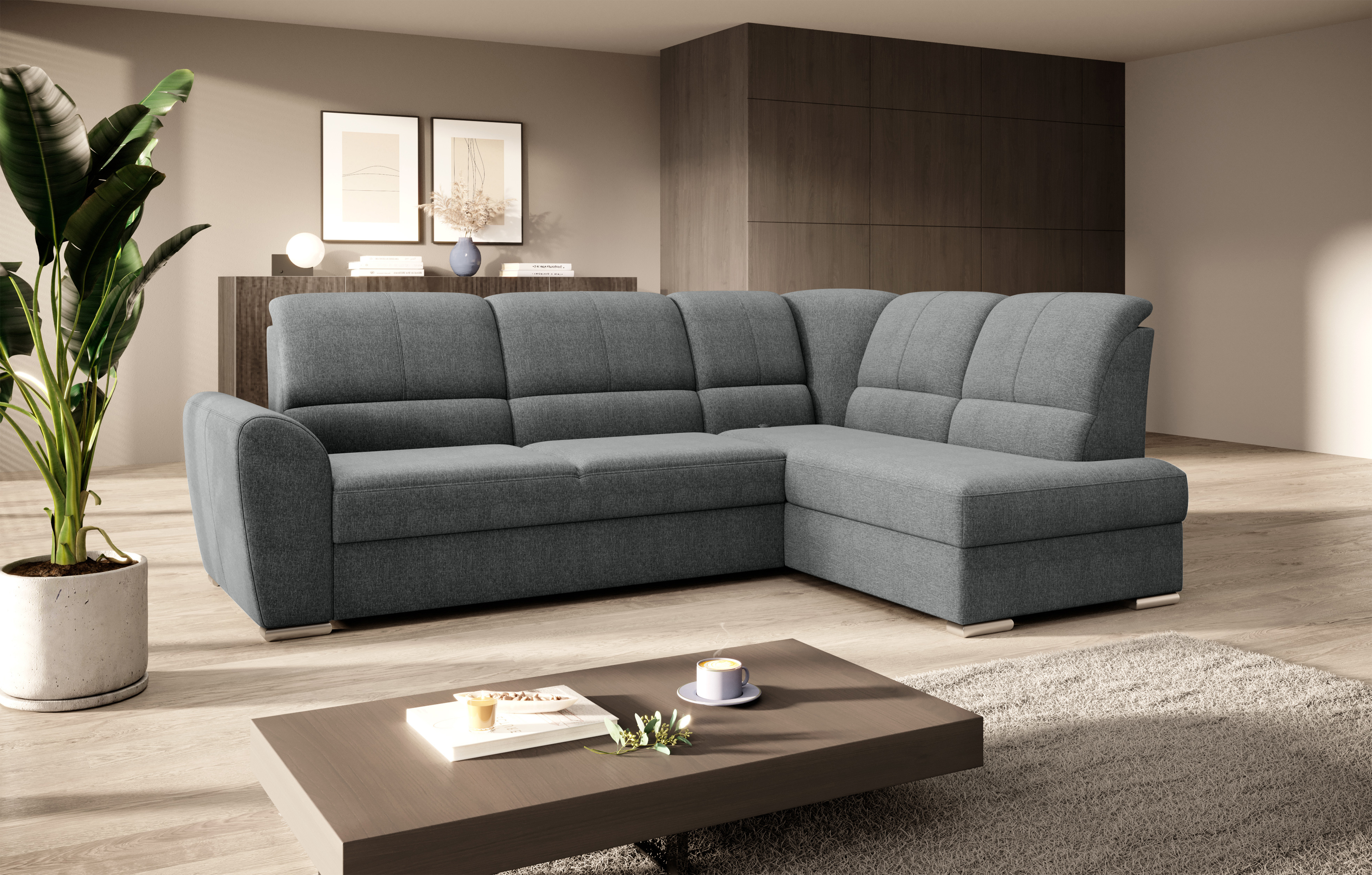 Sedací souprava Siber v provedení Vero 5 má rám z borovicového dřeva. Sedák má vyrobený z odolné vysoce flexibilní HR pěny T3030. Rozkladem DL vznikne spací plocha 205x125 cm. Sedací souprava s vysokými, tvarovanými, nastavitelnými opěradly zdobenými stylovým prošíváním disponuje úložným prostorem. Nosnost pohovky 315 kg. Nohy jsou dřevěné stříbrné o výšce 5 cm. Provedení rohu pravé. Zboží je částečně smontováno.