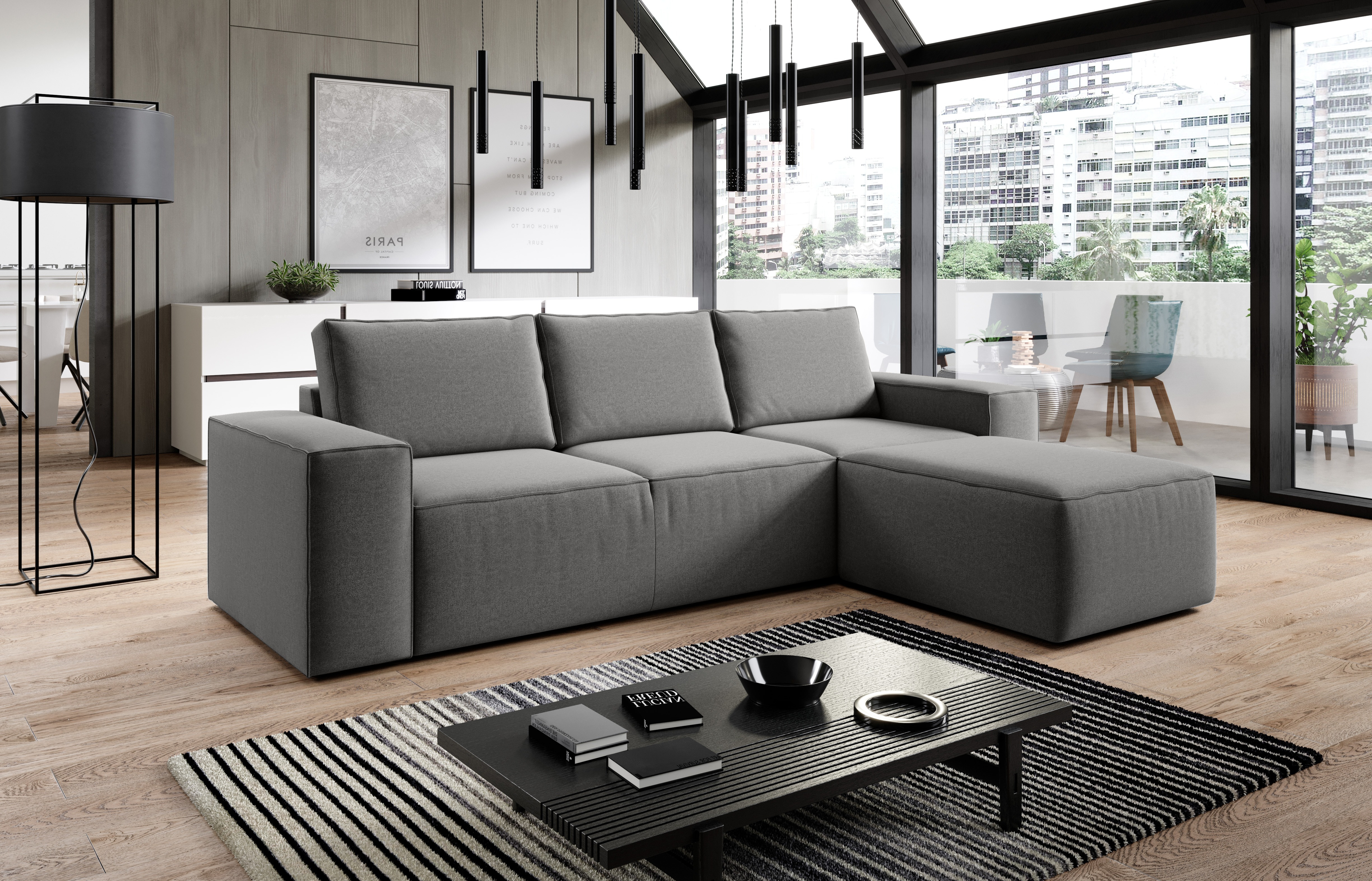 Sedací souprava Silla v provedení Gojo 5 má sedáky vyplněné HR pěnou a zádové polštáře pěnou T25. Rozkladem vznikne ložná plocha 243x128 cm. Sedací souprava je vybavena úložným prostorem o rozměrech: 158 x 54 x 19 cm.