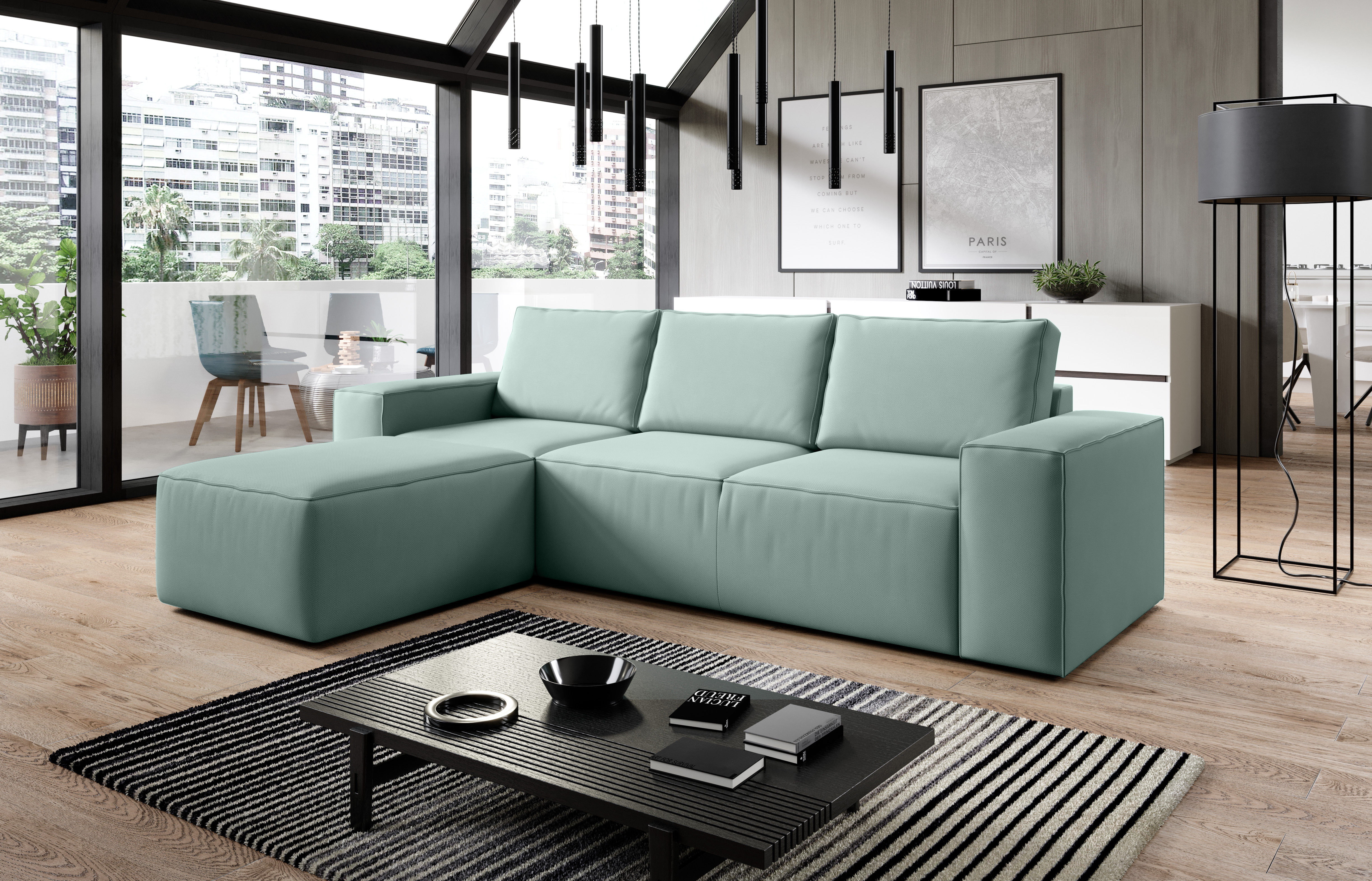 Sedací souprava Silla v provedení Poco 100 má sedáky vyplněné HR pěnou a zádové polštáře pěnou T25. Rozkladem vznikne ložná plocha 243x128 cm. Sedací souprava je vybavena úložným prostorem o rozměrech: 158 x 54 x 19 cm.